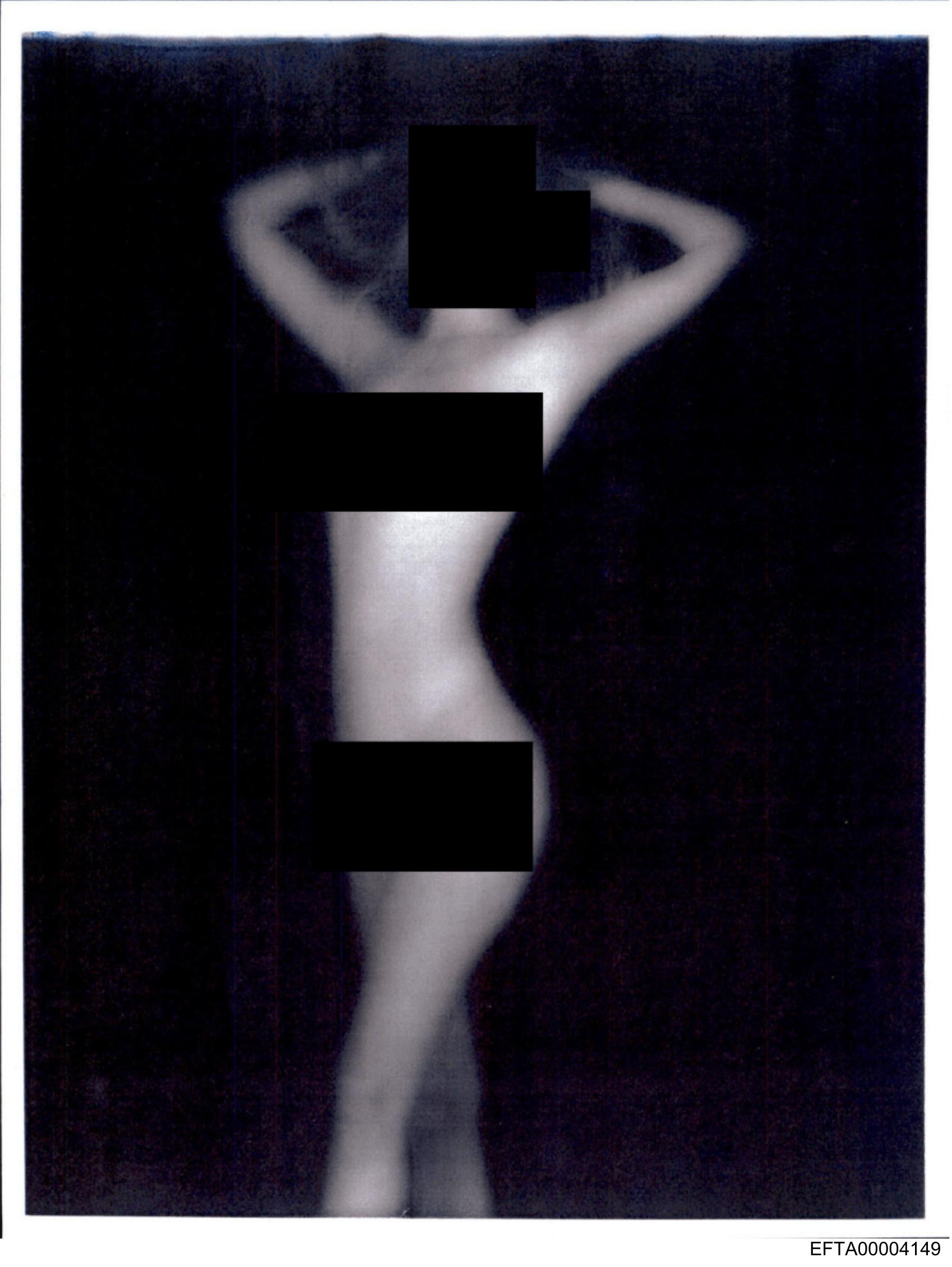 The image is a photograph featuring the back of a person who appears to be a woman. She has her arms raised above her head and is looking towards the camera. Her hair is styled in an updo, and she is standing against a dark background that contrasts with her light-colored skin. There are no visible texts or distinguishable locations within this image. The focus of the photograph seems to be on the human form and posture.