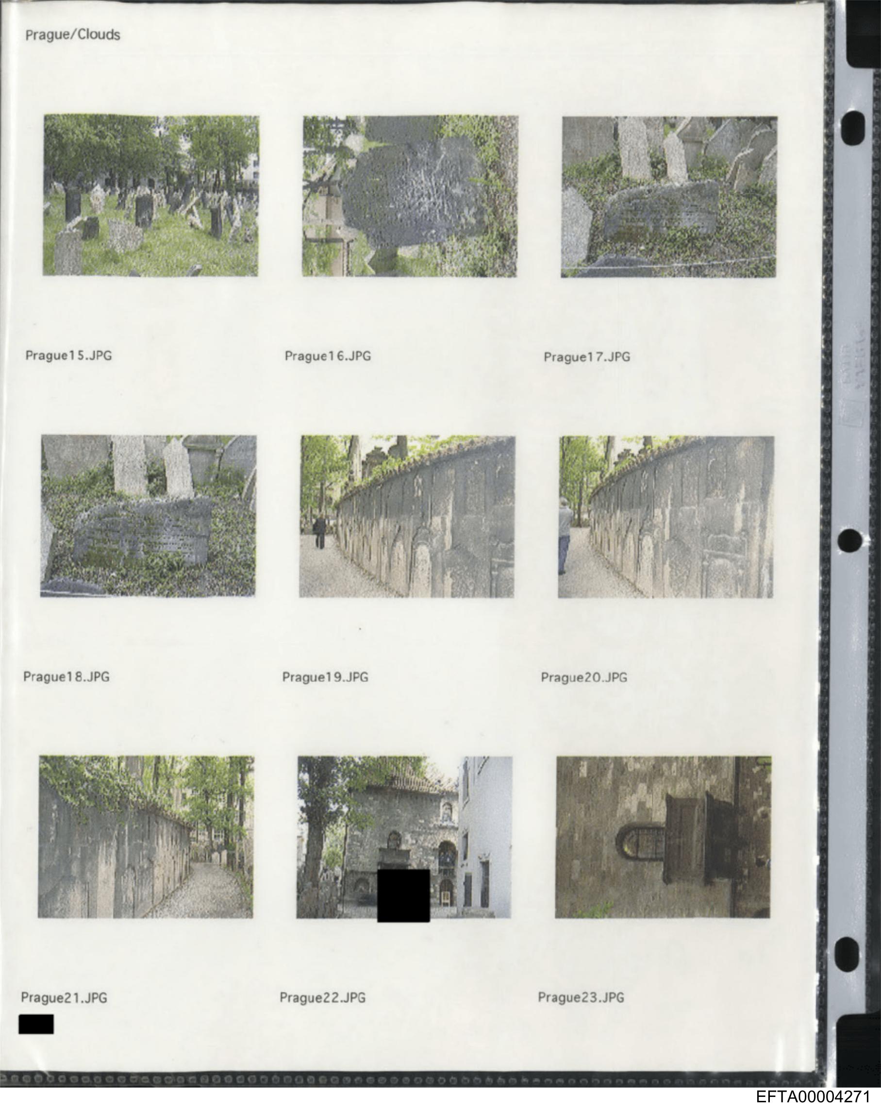 The image is a collage of several smaller photographs arranged on a single sheet. There are four photos from top to bottom, each depicting different scenes or subjects. The first photo shows an outdoor setting with greenery and possibly some ruins or old structures. The second photo features what appears to be a walled enclosure with vegetation growing on it. The third photo displays more architectural elements that could be part of historical buildings or monuments. And the fourth photo shows another outdoor scene, although the details are not entirely clear due to the image's resolution and size. There is visible text on the sheet that seems to correspond to each photograph, but it is too small to read in detail. The text may include descriptions or identifications of the scenes captured in the photographs. The style of the images suggests they could be related to historical sites, cultural landmarks, or architectural features. There are no people discernible within the photographs themselves, and the locations are not identifiable due to the image's quality and content.