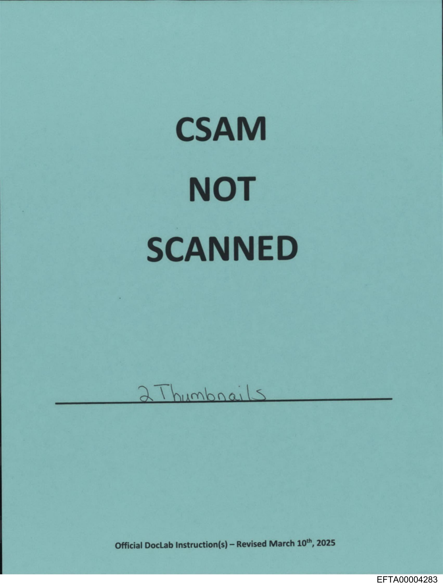 The image features a document with the text "CSM NOT SCANNED" prominently displayed at the top in bold letters. Below this statement is an instruction that says "2 Thumbnails." The paper also contains additional information, possibly related to scanning procedures or requirements. The bottom of the document includes what appears to be an official note from the US Department of Agriculture, stating it was revised on March 31, 2015. The style of the image is a straightforward photograph of a physical piece of paper placed against a flat background.