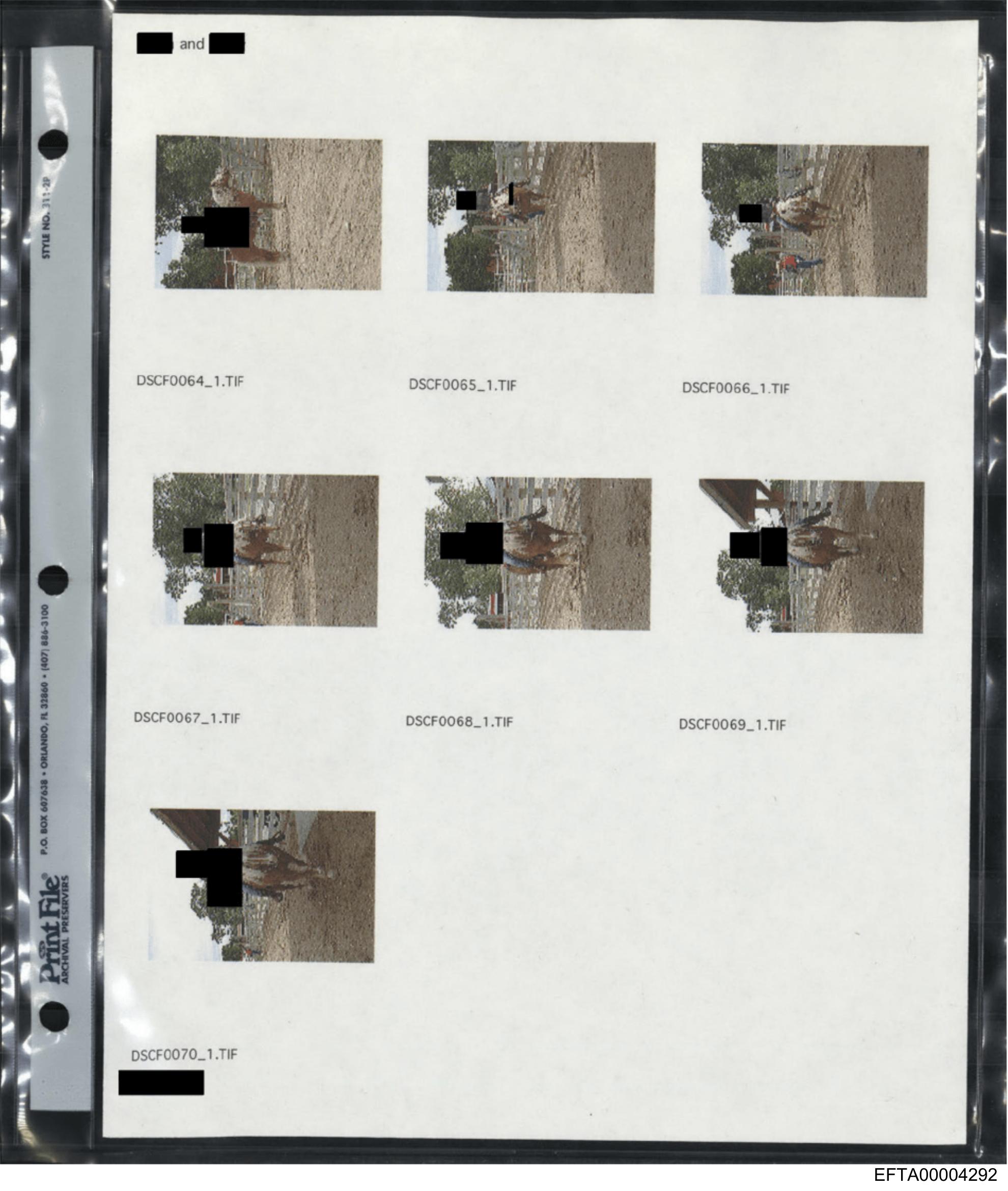 The image shows a collection of six photographs within a clear plastic sheet protector.