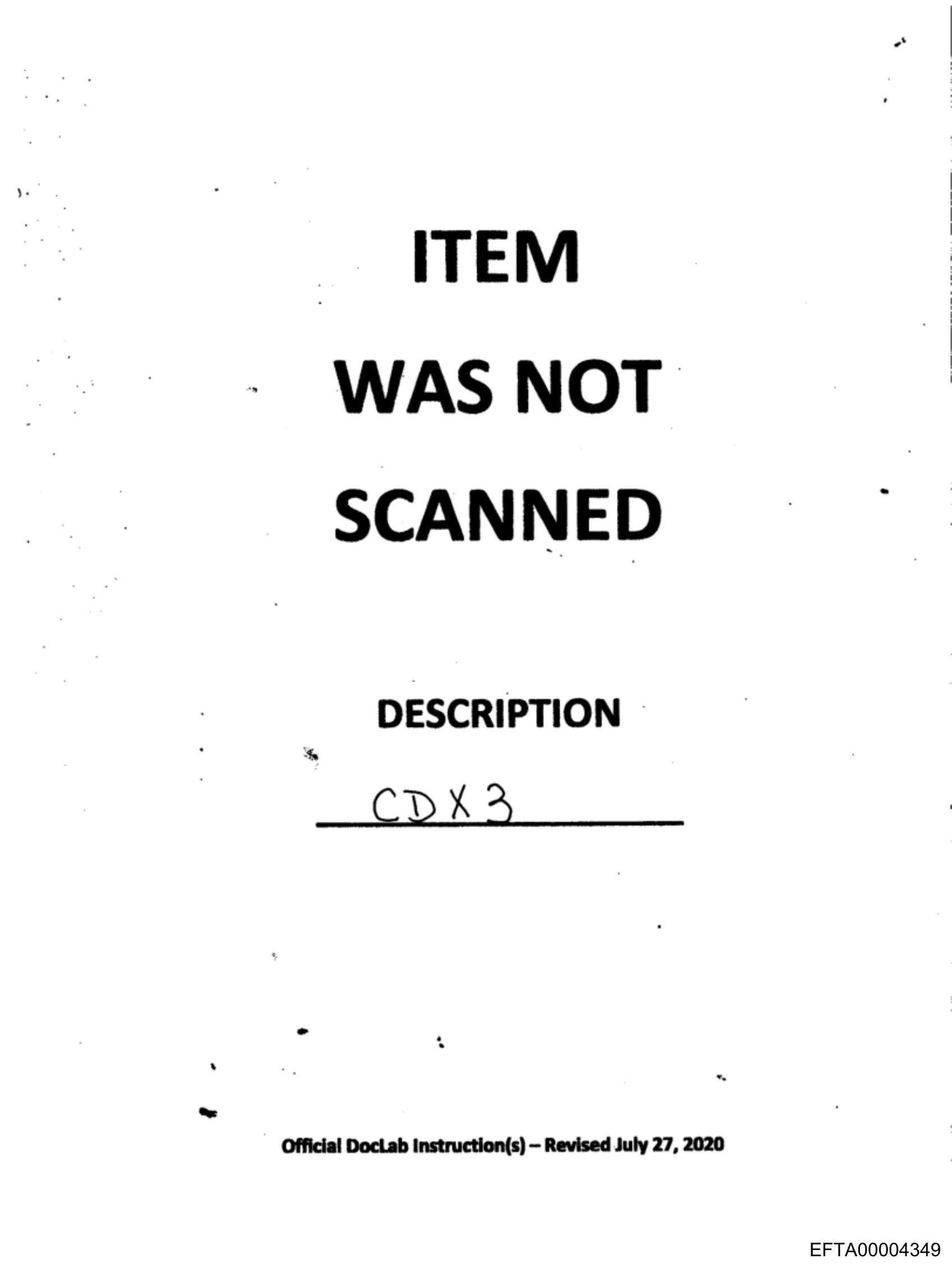 The image shows a document with the words "ITEM WAS NOT SCANNED" at the top, indicating that a particular item was not processed through a scanning system.