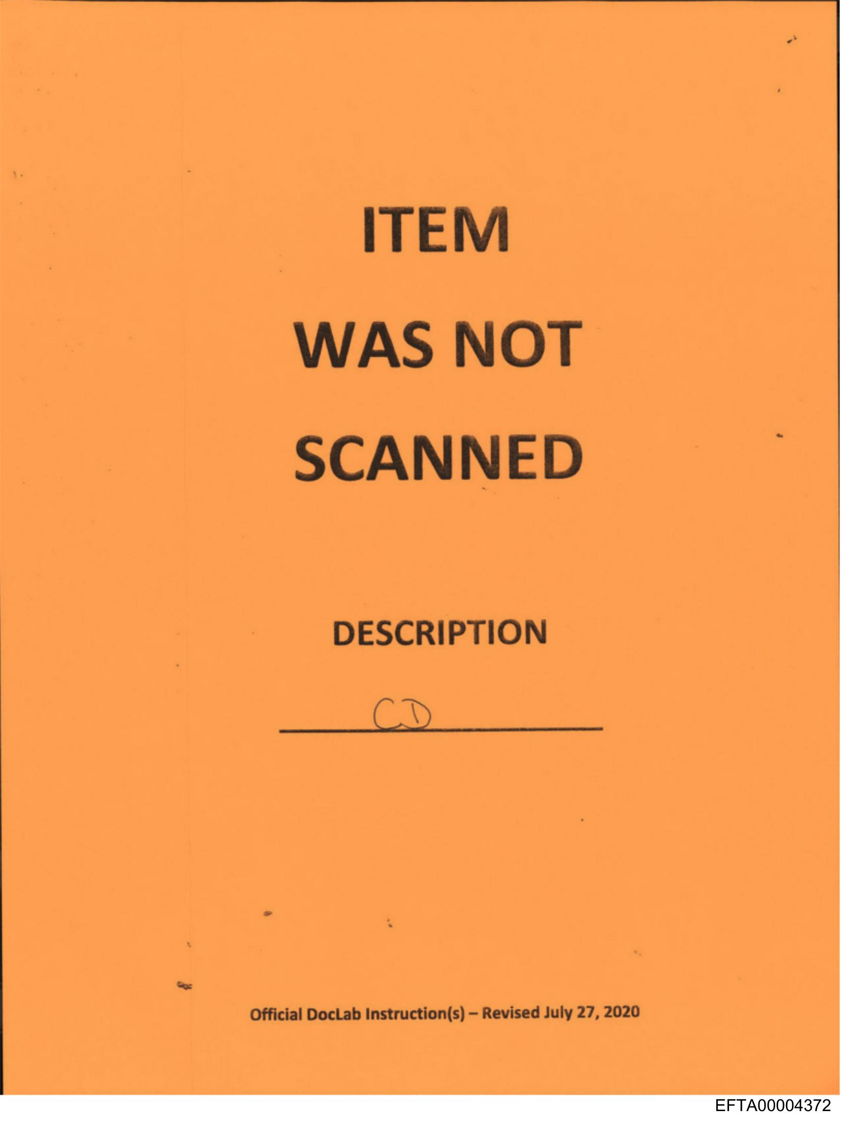 The image shows an orange warning sign with black text. The sign is rectangular and appears to be a paper notice rather than a digitally displayed message. It contains the words "ITEM WAS NOT SCANNED" in bold letters at the top. Below this, there's a section titled "Description" which has been filled out with handwritten text that reads "CD." At the bottom of the sign, there are instructions for how to handle the item, although these details are not fully visible. The sign is set against a neutral background, and no people or specific locations can be discerned from the image.
