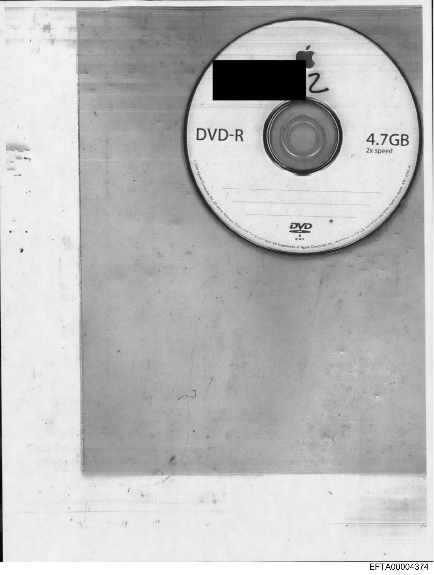 The image shows a close-up of a DVD disc with its label facing the camera. The disc has some wear and tear, as evidenced by scratches and scuff marks on both the reflective side and the label itself. There is visible text on the label that includes "DVD-R" indicating the format of the disc, and "4.7 GB" suggesting the storage capacity of the disk. The font used for this information is a simple, clear typeface typical of consumer electronic products. The background is indistinct but appears to be an indoor setting with a blurred texture that could suggest paper or fabric. There are no people, specific locations, or other significant objects in the frame apart from the disc itself.