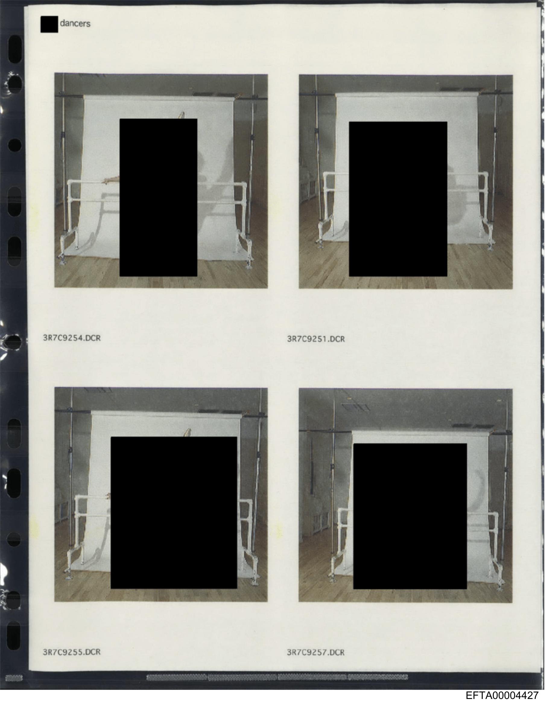 The image appears to be a photograph of an internal report, specifically a three-page spread with the first and third pages clearly visible. The report has a header on the right side that includes page numbers and possibly other information which is not fully legible due to the resolution. The content of the report seems to involve photography or visual documentation, as suggested by the image within the report showing two photographs in portrait orientation side by side. The photographs depict what looks like an interior space, perhaps a room or part of a building, with various objects and furniture visible but obscured by black lines, indicating that certain details are being censored or redacted. The style of the images is candid and documentary, possibly used for security or investigative purposes. The report itself seems formal in nature, suggesting it may be from an official agency or organization. The image quality and resolution suggest that this photograph of the report was taken with a digital camera or smartphone, as there are visible artifacts indicative of digital photography, such as pixelation and compression artifacts along the edges where colors seem to blend into each other.