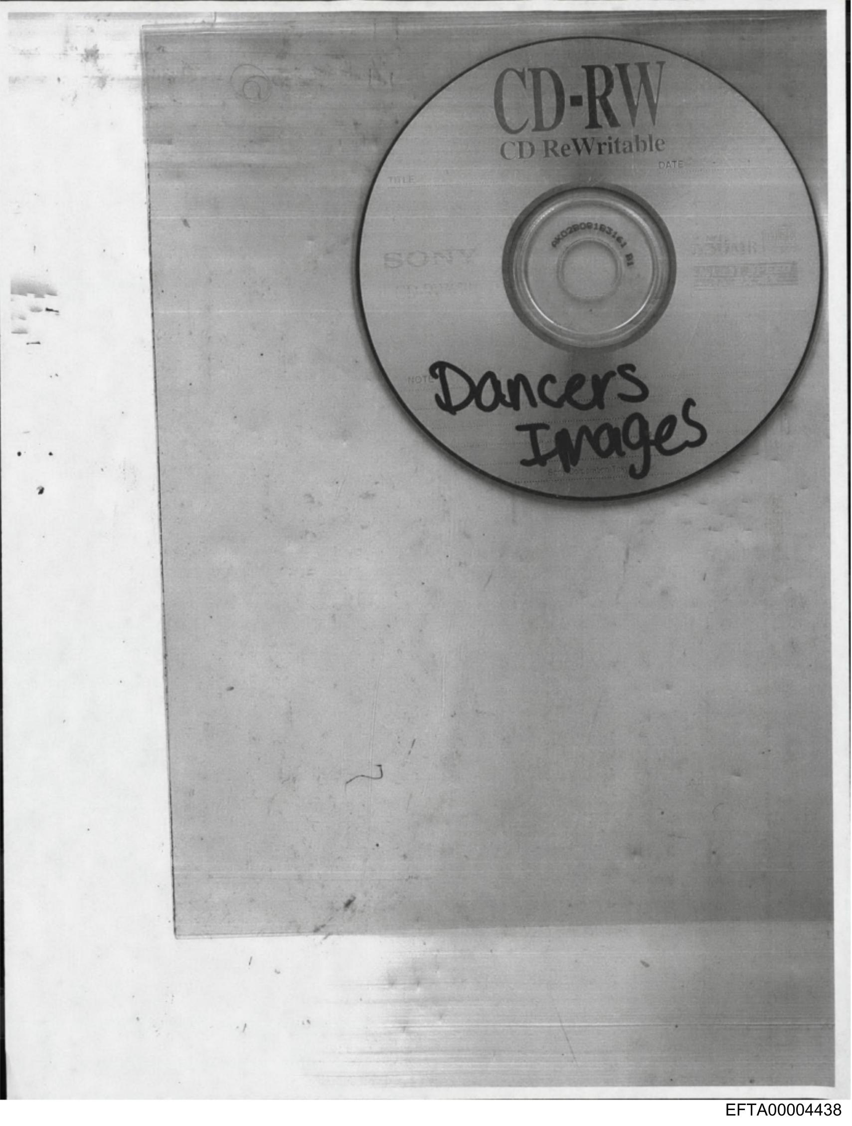The image shows a CD-R disk with handwritten label text that says "Dancers Photos".