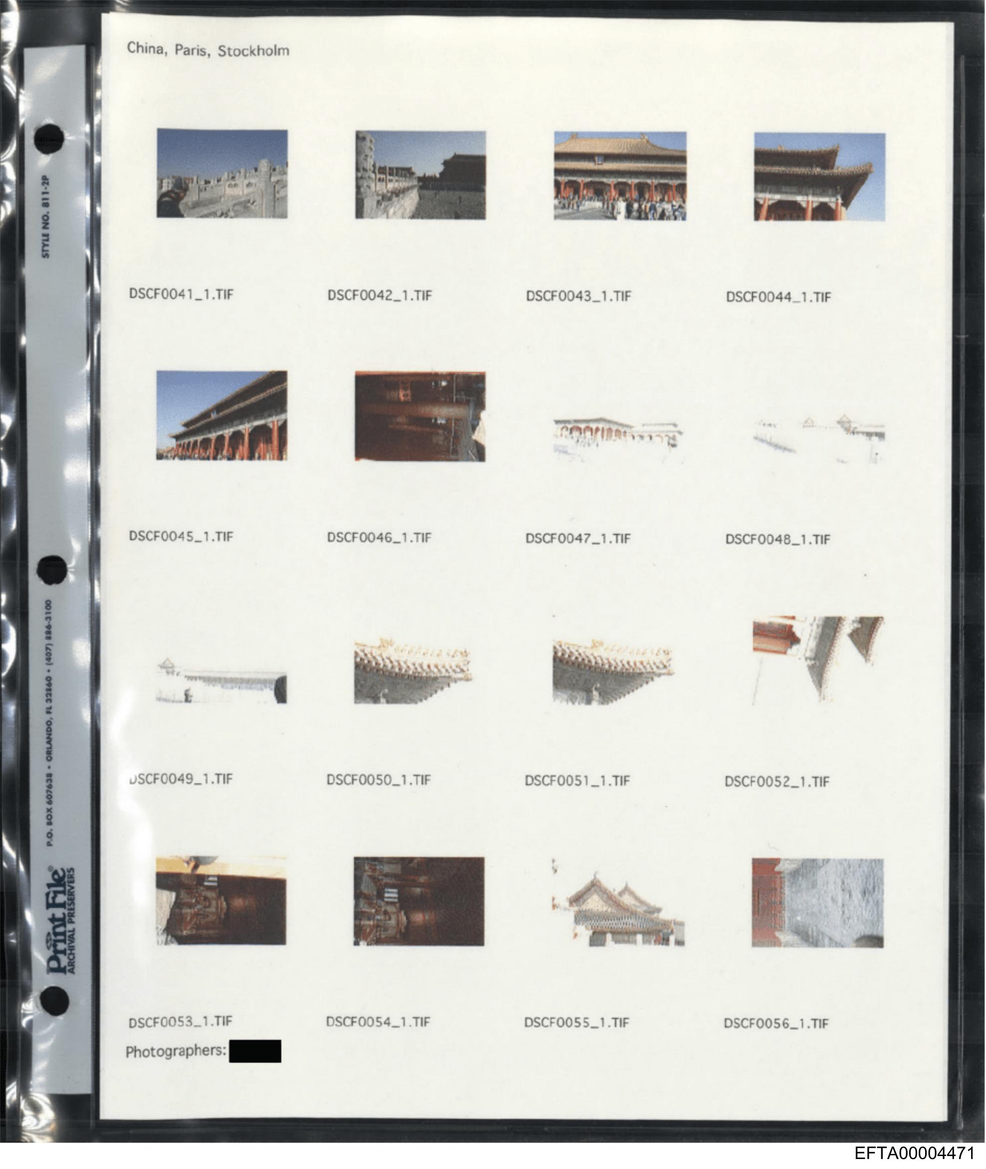 The image you've shared appears to be a printed page with a collection of small photographs arranged in rows and columns. Each photograph has a label next to it, but the text is too small to read clearly from this resolution. The style suggests that this could be a catalog or an album showcasing various images, possibly related to a theme or series. The visible portions of the photos show a variety of subjects, ranging from architecture to nature and human-made objects. However, without clearer details, it's not possible to provide more specific information about the content.