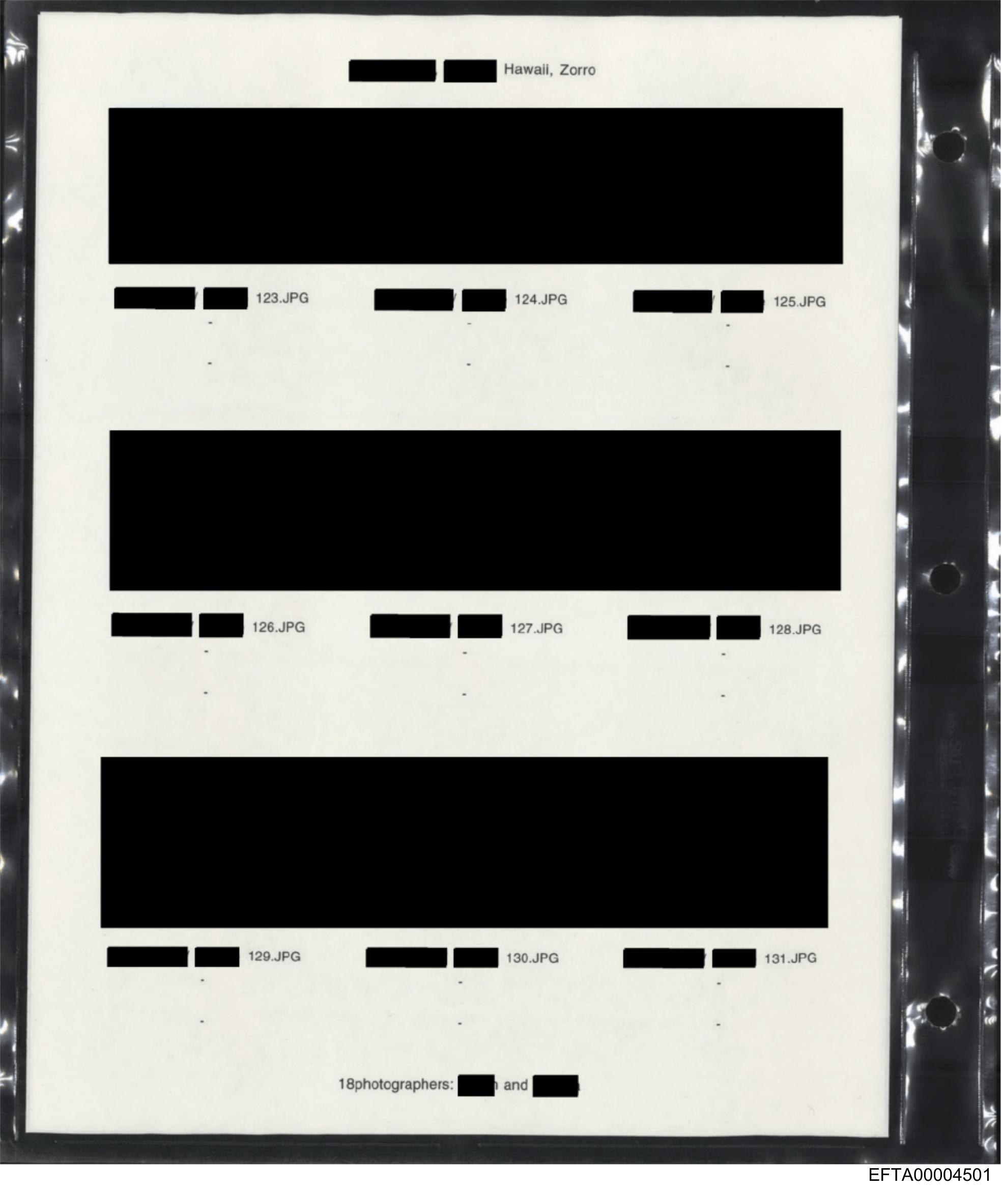 The image displays a document covered with black ink blots across several lines of text, obscuring the content for privacy purposes. The visible text includes headers such as "Mission Statement" and "Policies & Procedures" at the top, indicating sections within a larger document or handbook. The bottom of the page shows the heading "Photographs" followed by blots, concealing any specific instructions or regulations related to photography. The style suggests this is a standard print-out with visible perforations, suggesting it may have been printed on a dot matrix printer or another type that uses paper stock designed for continuous feed printers.