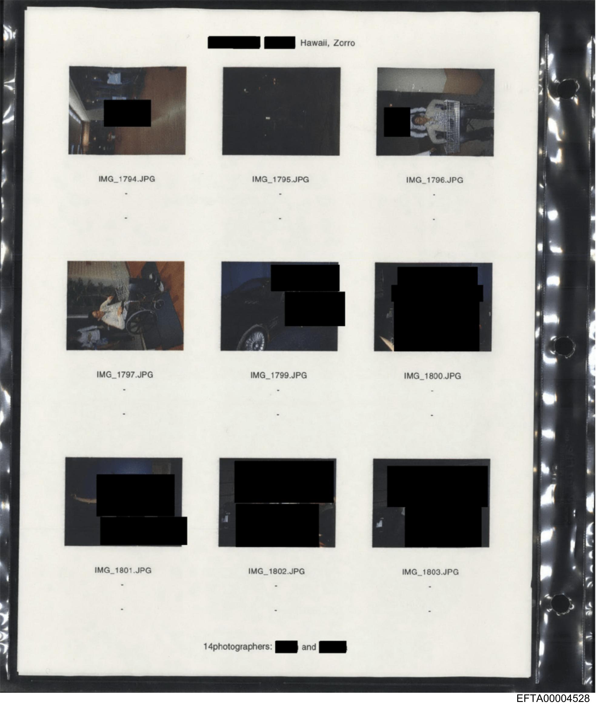 The image shows a page with thumbnail pictures of various scenes. There are eight images in total, each depicting different subjects such as indoor spaces, objects, and what appears to be nature or outdoor settings. In the top left corner of the page, there is visible text that reads "Photo 1", followed by some description which is not entirely clear due to the resolution. The style of the image suggests it might be a printed document or a digital representation meant to represent a physical object like a photograph album or a presentation board with images pinned to it.