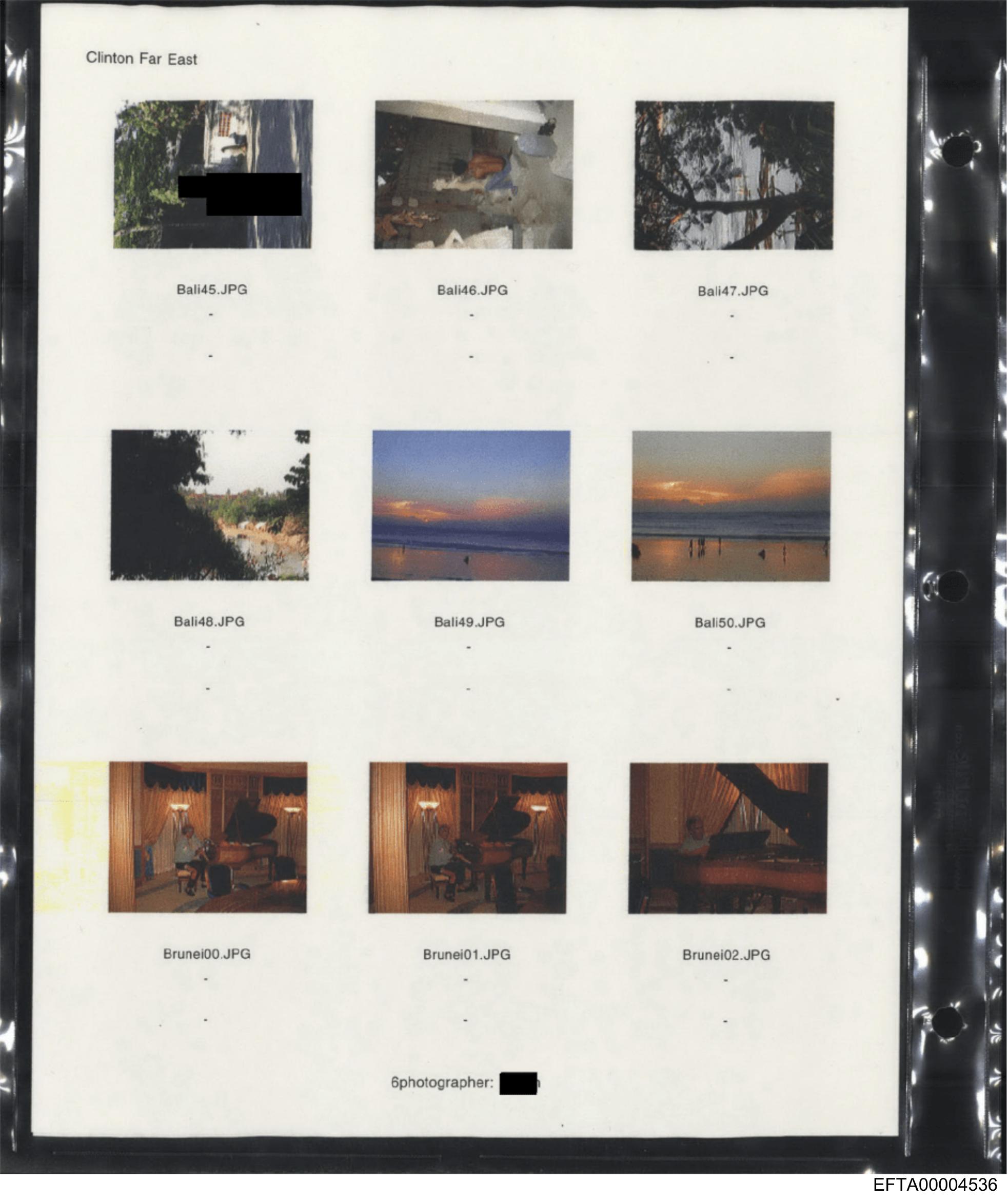 The image shows a printed page with several photographs displayed alongside their corresponding captions and file names.