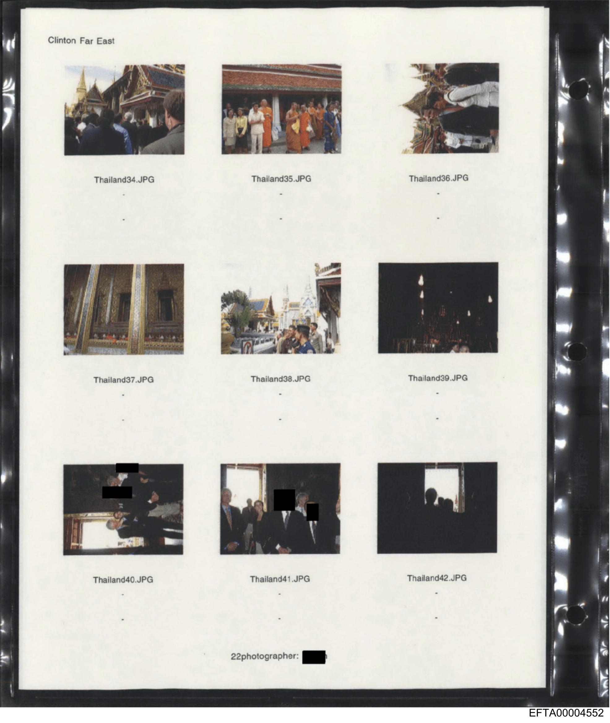 This image appears to be a collage of smaller photographs, possibly representing different scenes and moments captured during a journey through Thailand. The photos show various architectural styles and cultural activities. There are images of buildings with traditional Thai roofs, ceremonies attended by monks dressed in saffron robes, and people engaged in conversations or observing events. Additionally, there is an image of a person seated at a desk with books, which could suggest a research or learning context related to the journey. In the bottom right corner, there's a watermark that includes what seems to be a photographer's name or signature, which has been obscured by a red "X" mark for privacy or copyright reasons. The collage itself is encased in a plastic covering, with a visible line of tape on one side, indicating it may have been placed there for protection or presentation purposes.