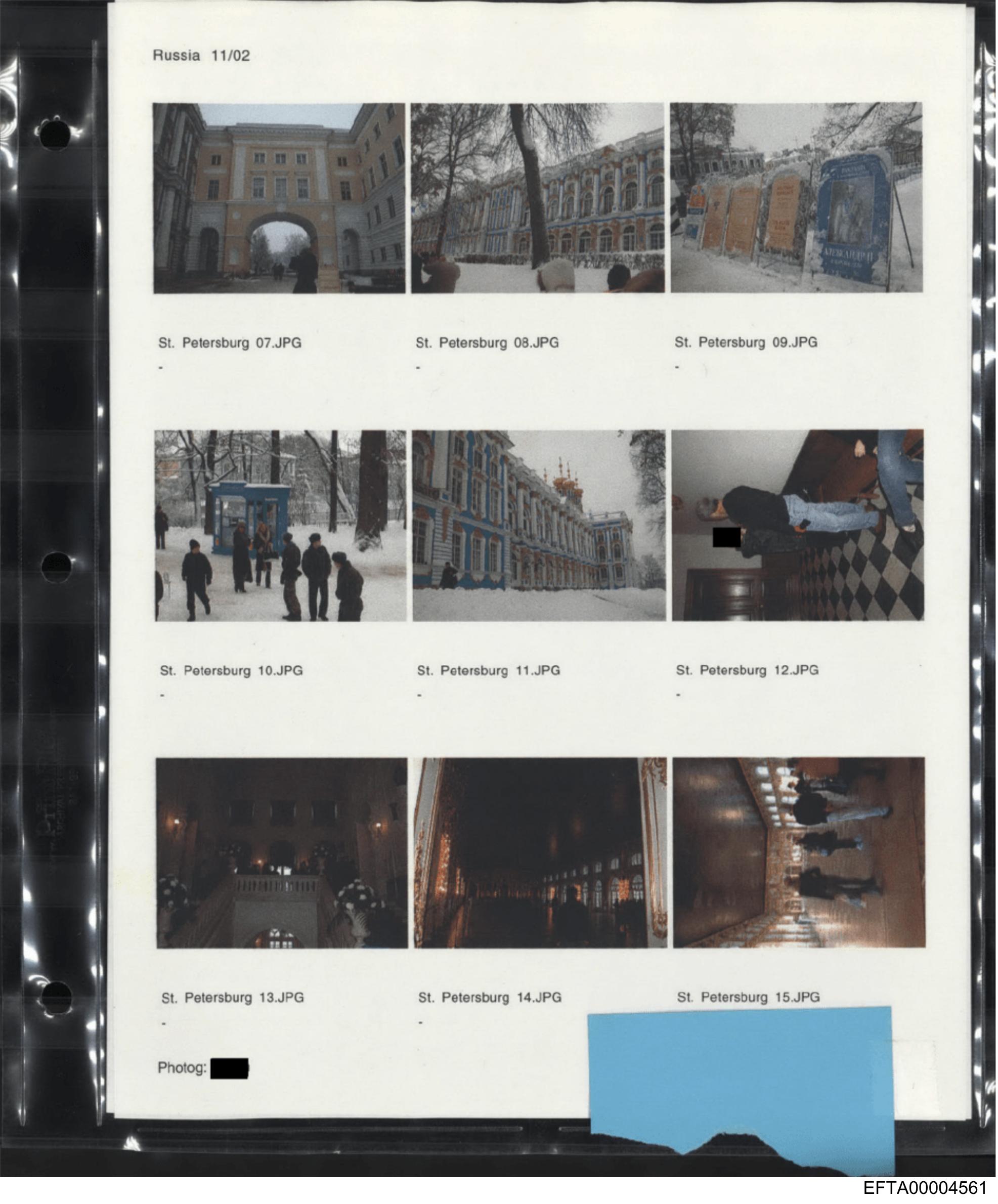 The image shows a collection of photographs displayed on a presentation sheet with captions. The photographs depict various scenes including city streets, historical architecture, and possibly cultural events. Each photo is accompanied by text that seems to provide additional context or information about the depicted scene. Some of the visible text includes numbers, which might indicate dates or reference codes for each photograph. The style of the images suggests they are documentary in nature, capturing moments from a specific location or event. There are no identifiable people within the images shown.