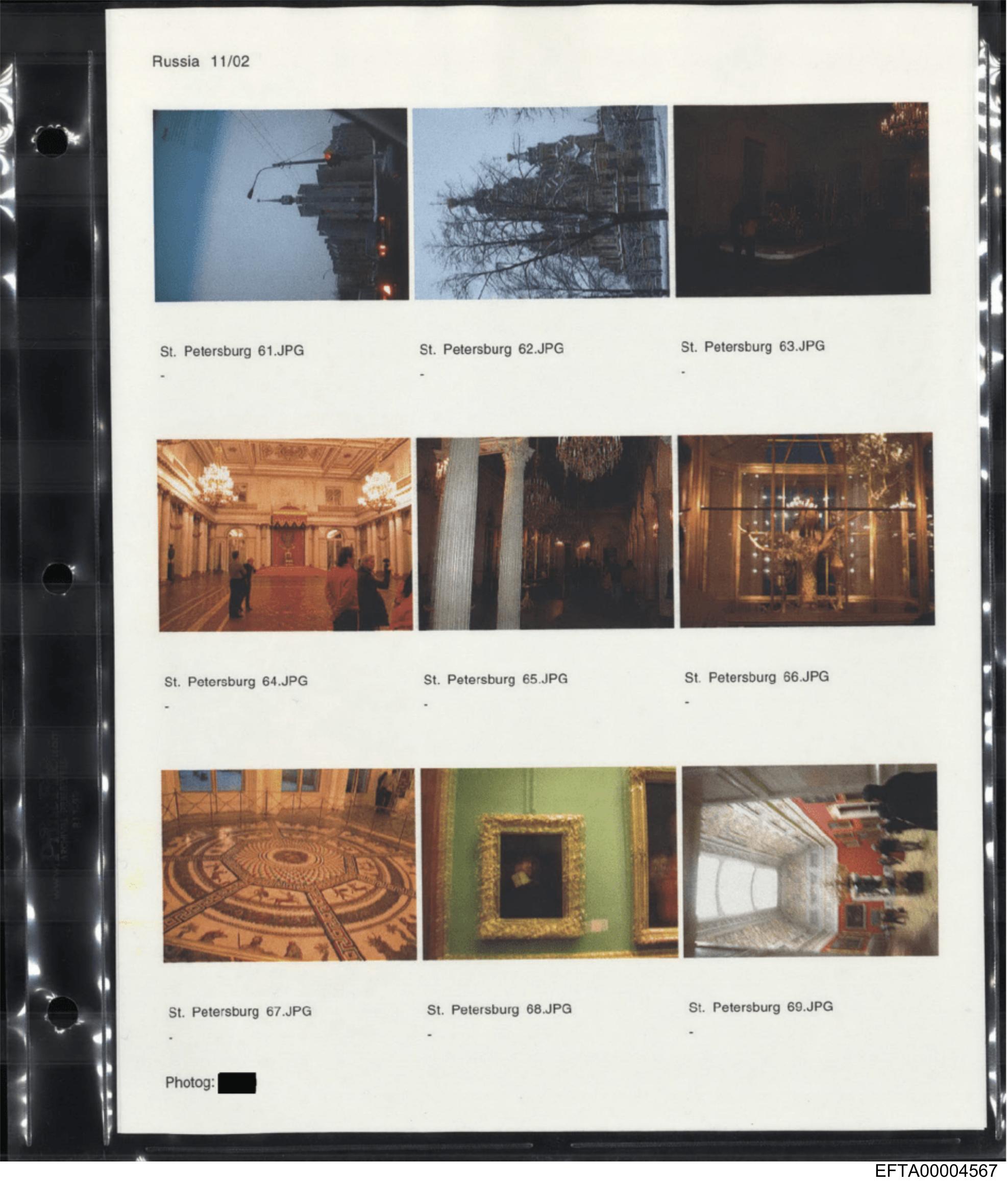 The image appears to be a page from a photo album featuring photographs of various architectural and interior scenes, likely taken within the Hermitage Museum as indicated by the text "HERMITAGE MUSEUM" present in multiple captions.