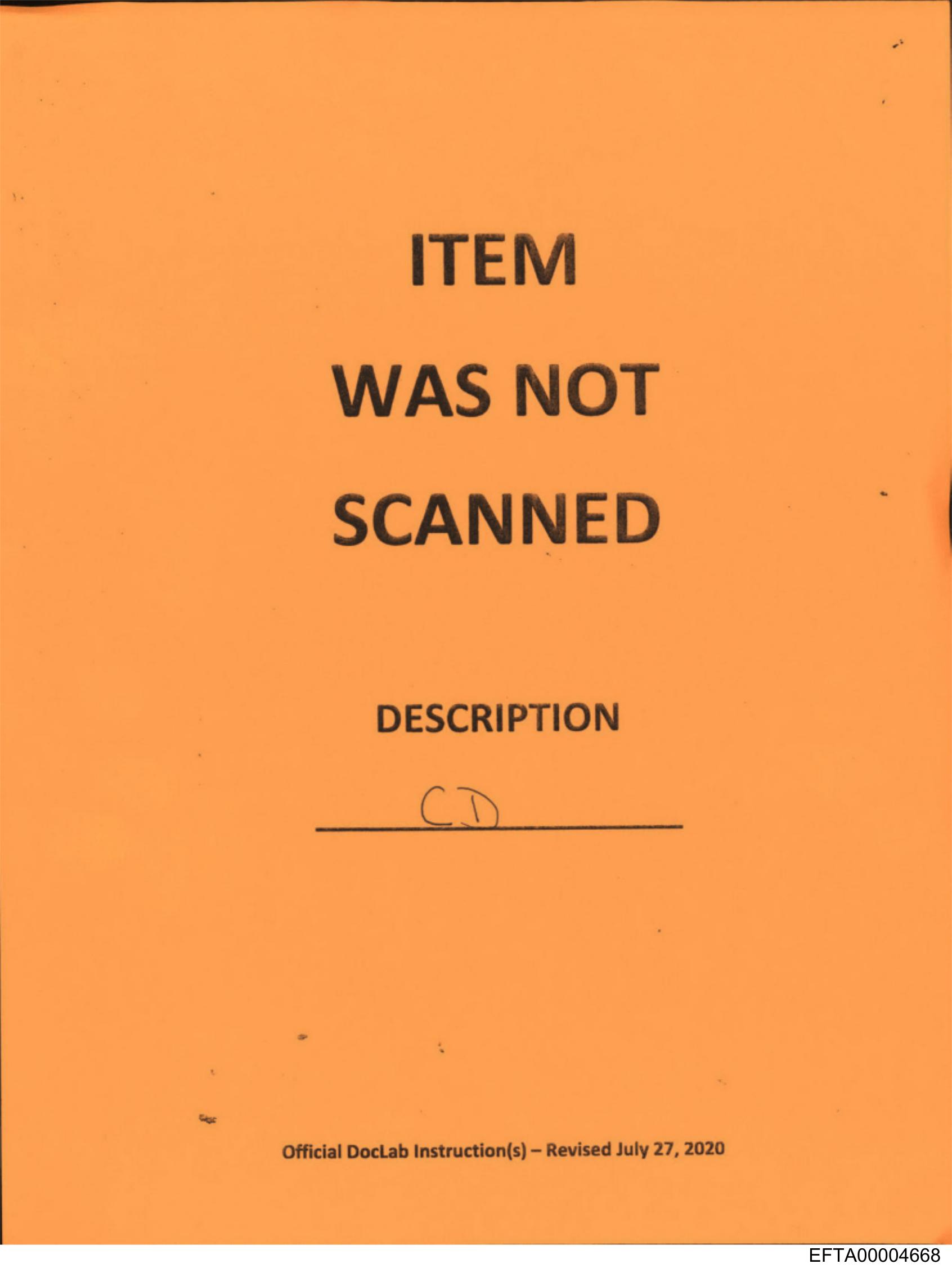 The image shows a yellow paper with black text that reads "ITEM WAS NOT SCANNED" followed by the word "Description" and what appears to be handwritten notes, possibly related to an item that could not be scanned.