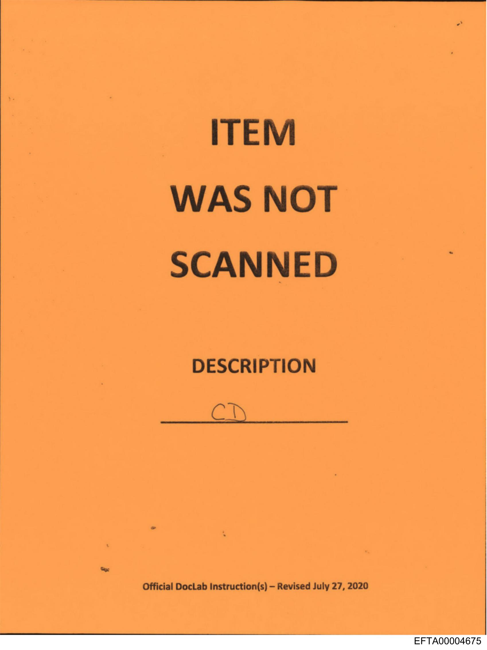 The image shows a document with the words "ITEM WAS NOT SCANNED" printed at the top in bold letters, indicating that an item was not properly recorded through electronic scanning procedures.
