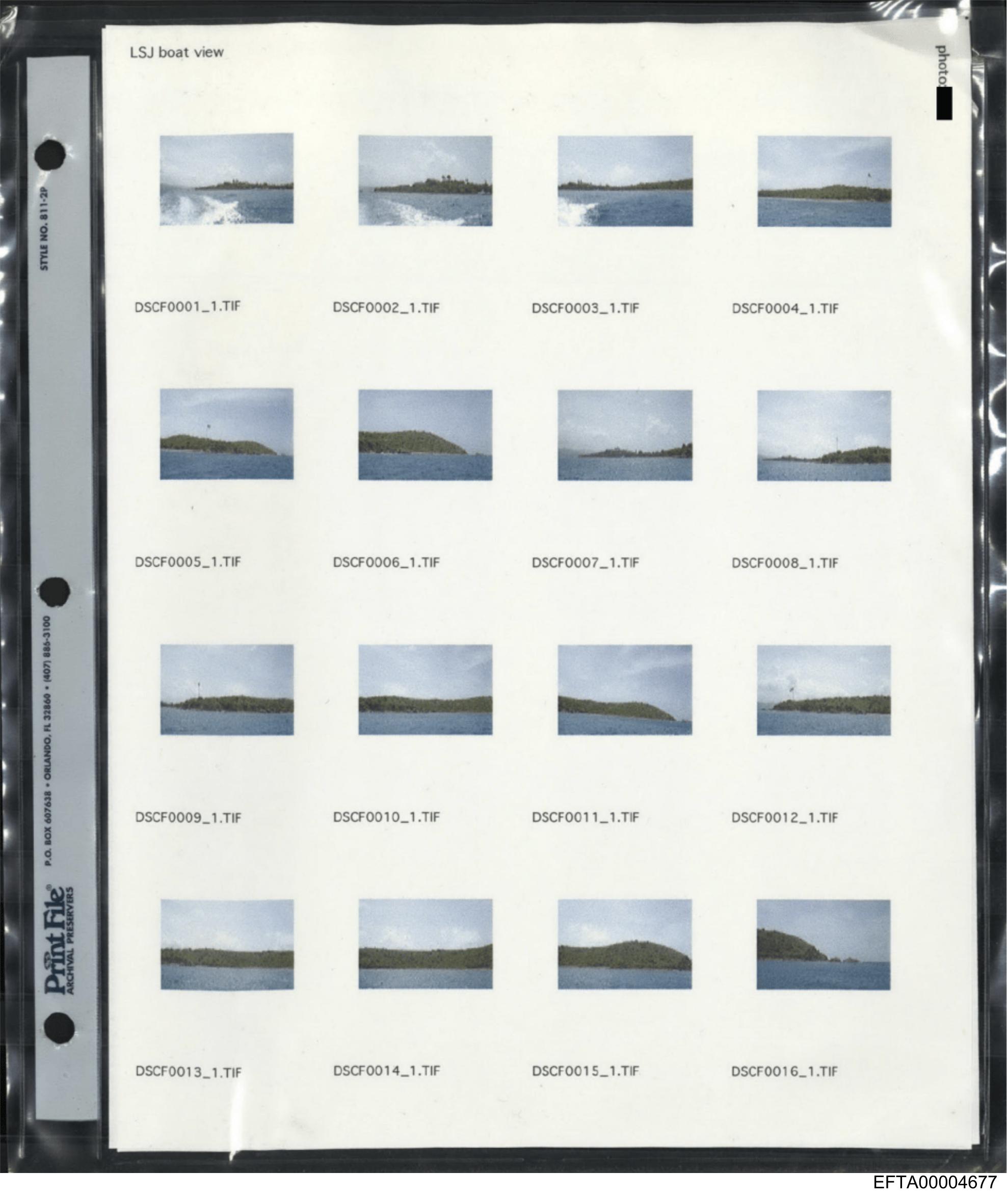The image shows a collection of photographs arranged on what appears to be an album page. The photos are of landscapes and seascapes with islands, possibly taken from an aerial perspective. Each photo is labeled with text that includes the word "island" followed by numbers, suggesting these could be identification codes for the images. The style of the image suggests it may be historical or related to a specific time period due to its presentation and quality. There are no visible texts providing additional context about the location or purpose of the photographs.
