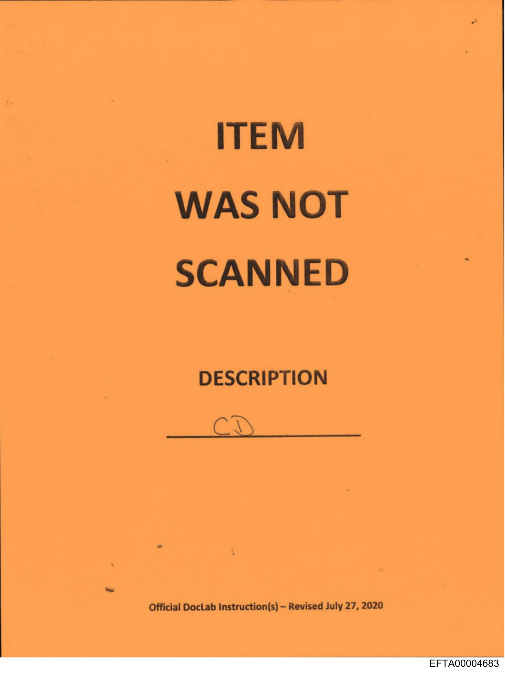 The image shows a yellow label with black text. The text reads "ITEM WAS NOT SCANNED" prominently at the top. Below that, there is space for a description, which is left blank in this instance. At the bottom of the label, there are instructions or notes which seem to provide further information on what to do with items that have not been scanned; however, the details of these instructions are too small to read clearly from the provided image. The overall style of the photo appears to be a straightforward, non-stylized photograph focused on capturing the content of the label.