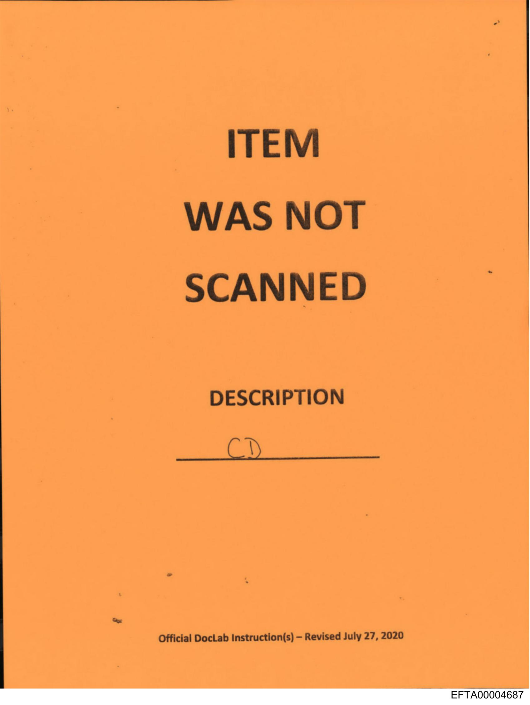 The image shows an orange label with black text that reads "ITEM WAS NOT SCANNED" and "Description" followed by a blank space where additional information would typically be written.