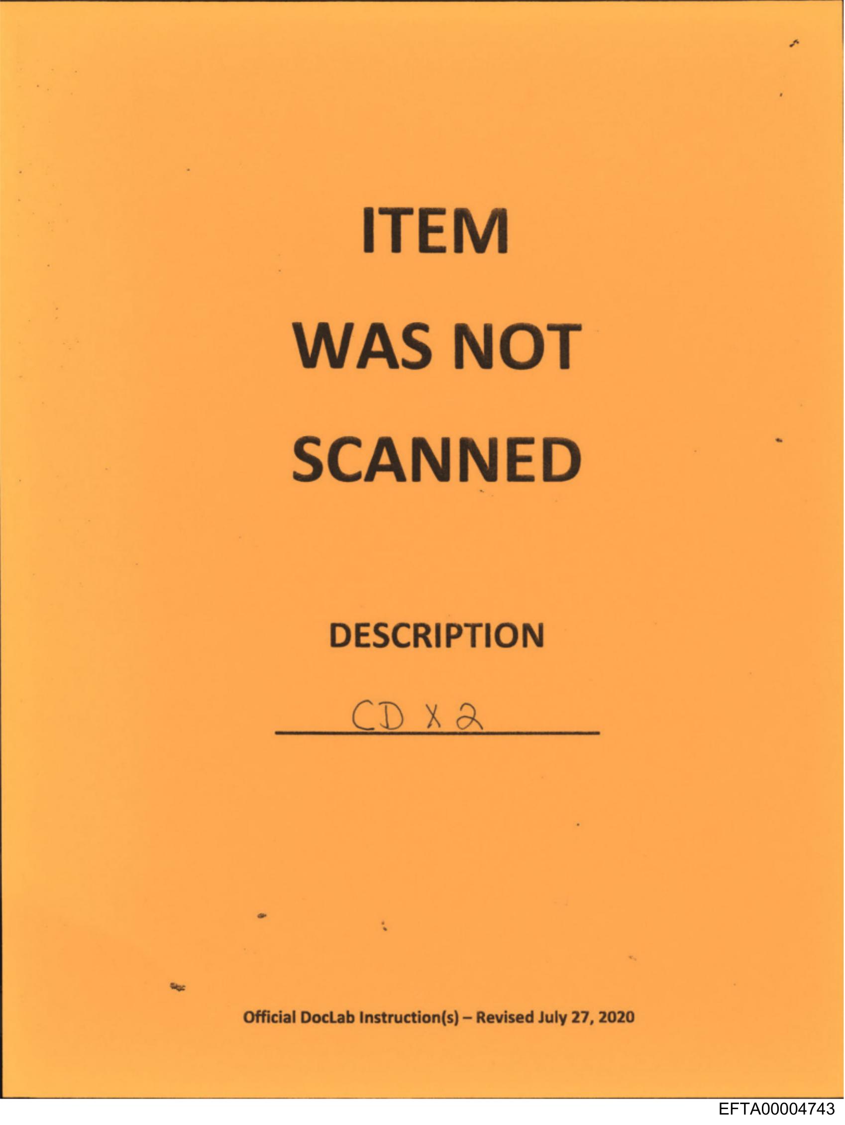 The image is a photograph of an official document with a warning message at the top that reads "ITEM WAS NOT SCANNED".