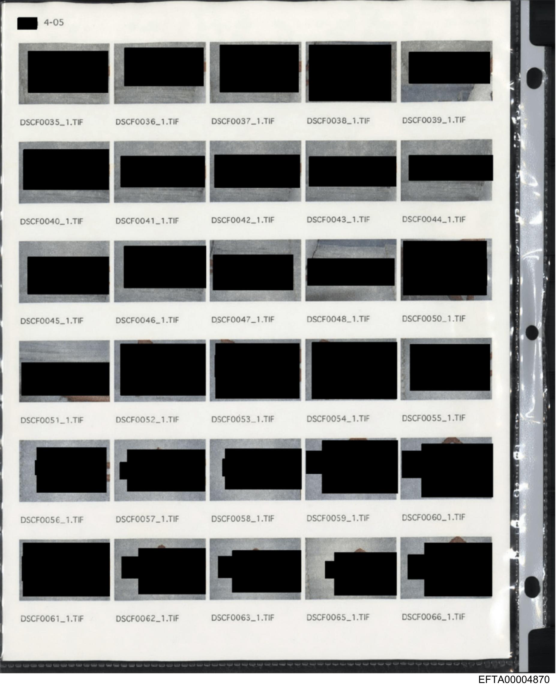 The image shows a series of photographs printed on paper, with each photograph appearing to be censored by black rectangles placed over the area that has been obscured.