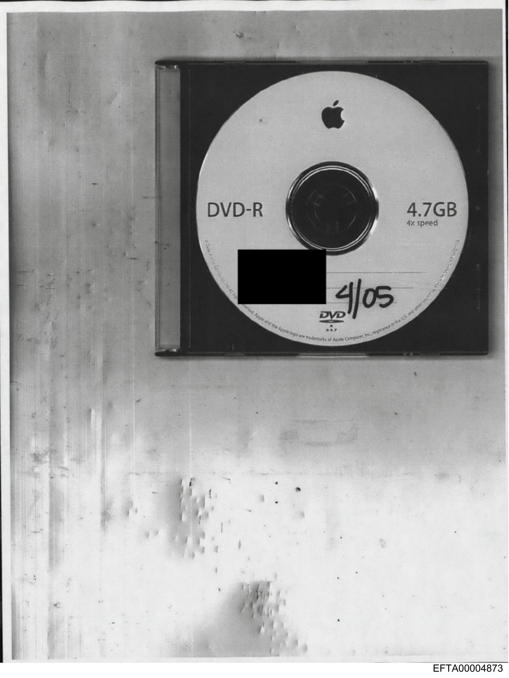 The image features a CD with the Apple logo prominently displayed on its center label. The disc has "DVDR" written near the edge of the label, indicating it is likely a recordable DVD-R disc. There's also handwritten text that reads "1046," which could be a serial number or reference code. In the background, there appears to be a wall with some scratches or marks, suggesting the photo may have been taken in an informal setting, possibly related to technology or media storage.