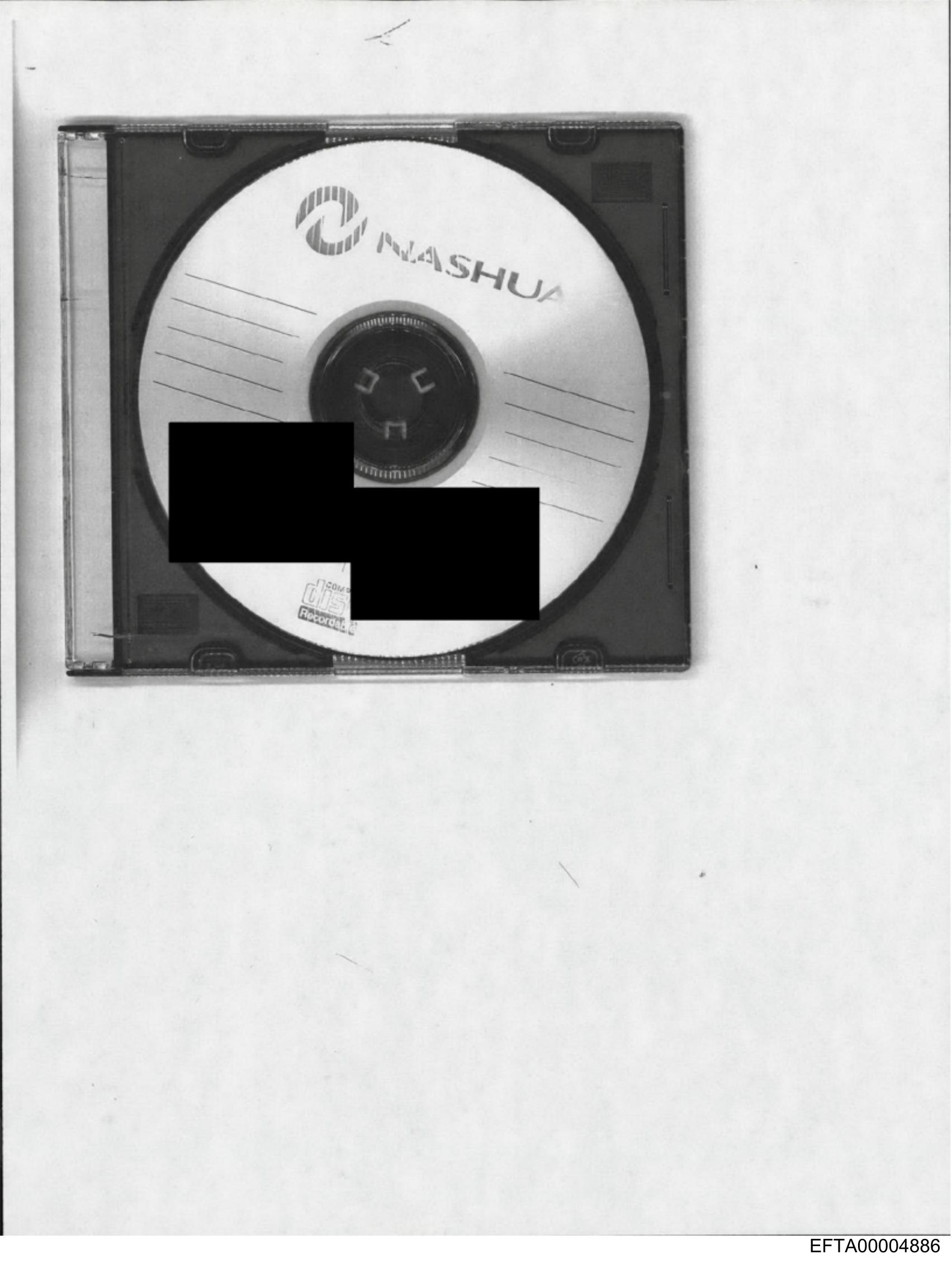 The image shows a CD disc with its label facing the camera. The label features text that includes "NASHI" and appears to have a logo of two overlapping circles in red and white. Below these elements, there is a series of numbers which seem to be a code or track listing. The CD case itself has a black exterior with some wear visible along its edges and corners, suggesting it's been handled or stored for a period of time. In the background, a plain surface with horizontal lines can be seen, possibly a piece of paper or wall. The overall quality of the image is somewhat grainy and blurred, indicating that it may have been taken with low light conditions or a digital camera of limited resolution.