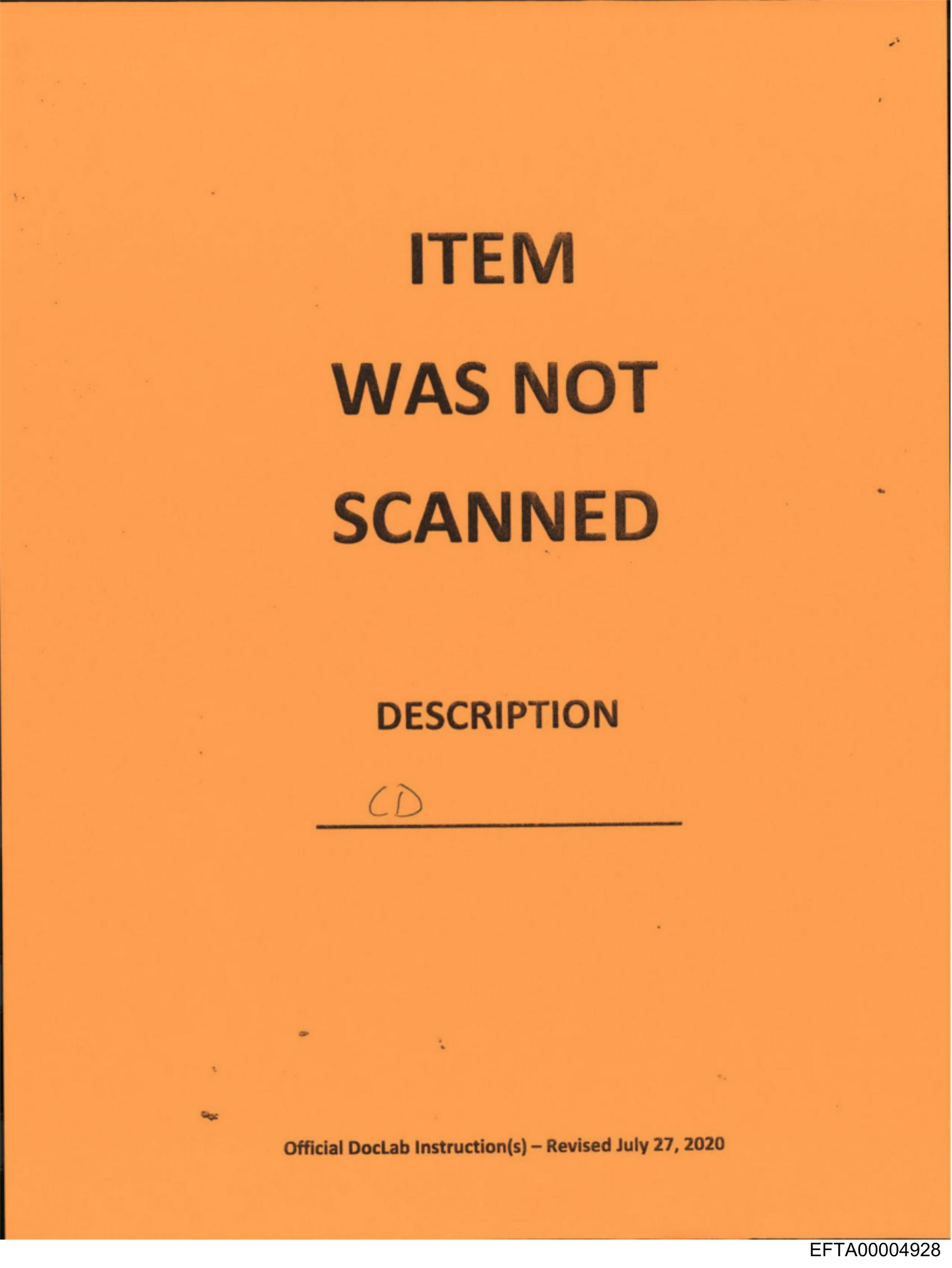 The image shows a yellow slip of paper with black printed text and a handwritten entry. The text on the paper reads "ITEM WAS NOT SCANNED" followed by an empty field labeled "Description" where no details have been filled in, apart from a handwritten note that appears to be an abbreviation or code. There is also a section titled "Official Use Only" with pre-printed fields for date and signature, which are blank. The background of the image is not clearly visible due to the focus on the paper.
