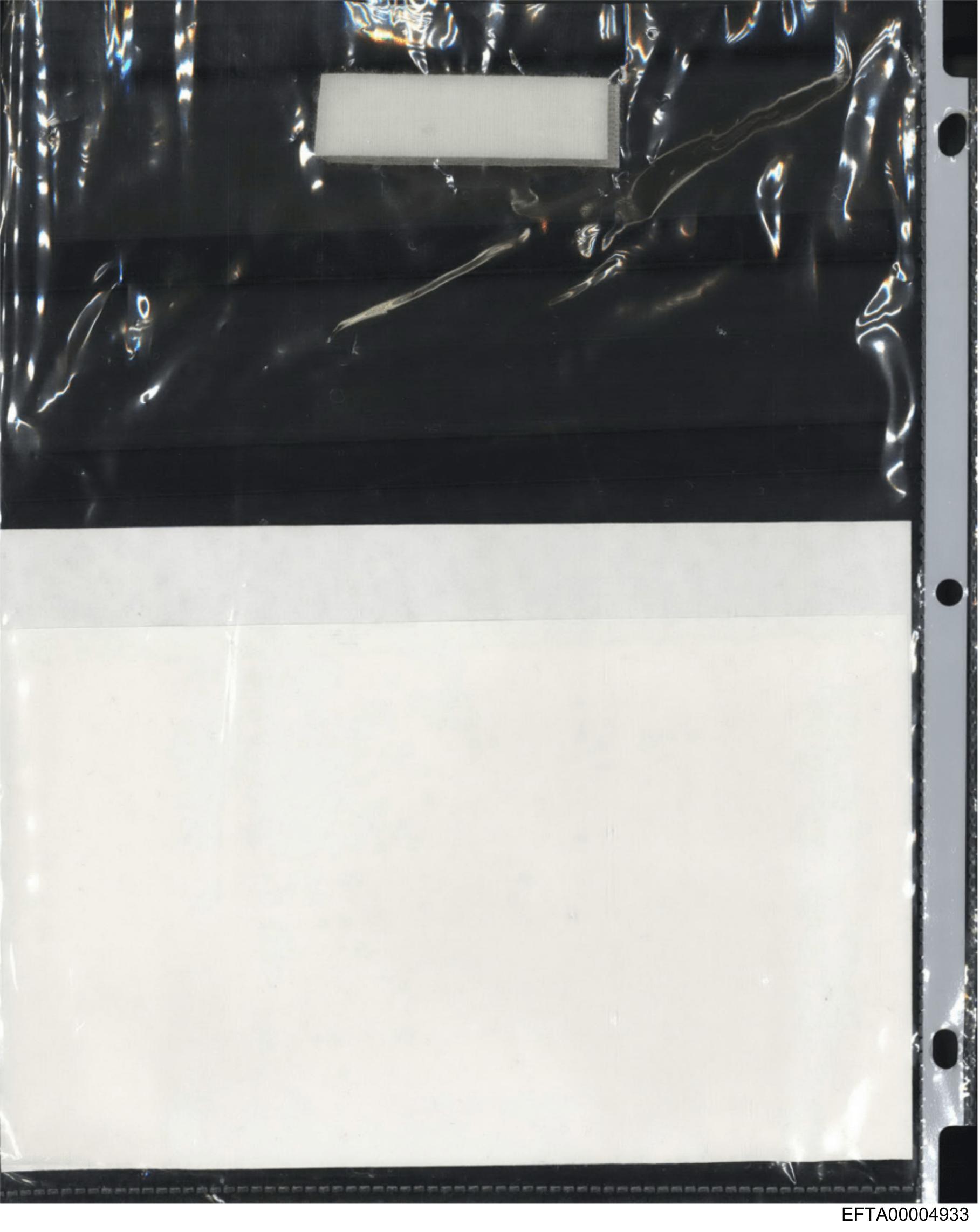 The image shows a close-up of what appears to be a portion of an identification card or badge, likely from an event such as a conference or seminar. The card is encased in a clear plastic cover with a black border, providing protection and durability. The visible part of the card includes a large rectangular area that seems to have text printed on it, although the content of the text is not legible due to the close-up perspective and the resolution of the image. There are also two small round holes near the top edge, which are typically used for attaching lanyards or clips for easy display around the neck. The style of the image is a straightforward, unembellished photograph focused on the card itself without any additional context or background elements visible.