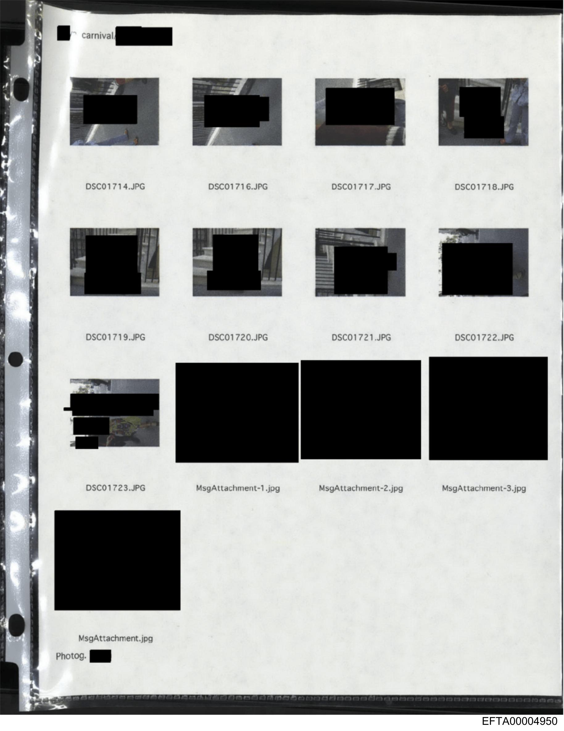 The image is a photograph of a printed document with multiple pages secured by a plastic cover and fasteners at the top corners. The visible page shows a list that includes various items such as dates, times, locations, and descriptions, which appear to be related to a legal or administrative process given the presence of phrases like "case number" and what seems to be redacted information. Some entries are marked with an asterisk symbol. There is no text at the bottom of the visible page. The document is held by a person whose upper body is only partially visible, suggesting it might have been handed over or shown off-camera.