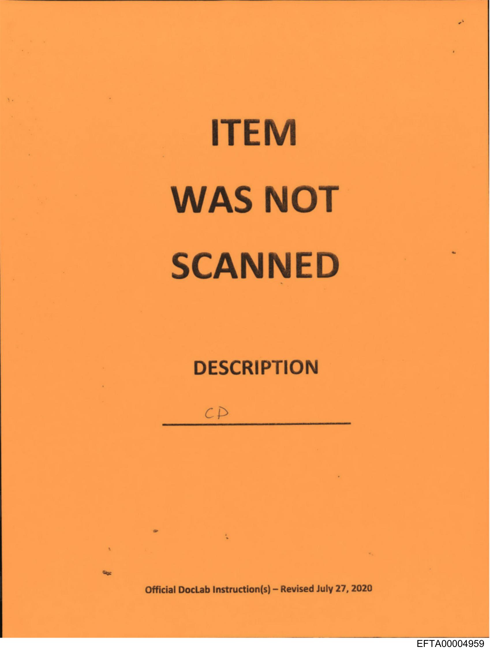 The image shows a bright orange paper with black text on it. The text is prominently displayed and reads "ITEM WAS NOT SCANNED" at the top. Below this statement, there is a blank space where further information could presumably be added or written down by hand. The style of the paper suggests it might be an informational notice or a form to be filled out. There are no people, locations, or other objects visible in the image apart from the orange paper itself.