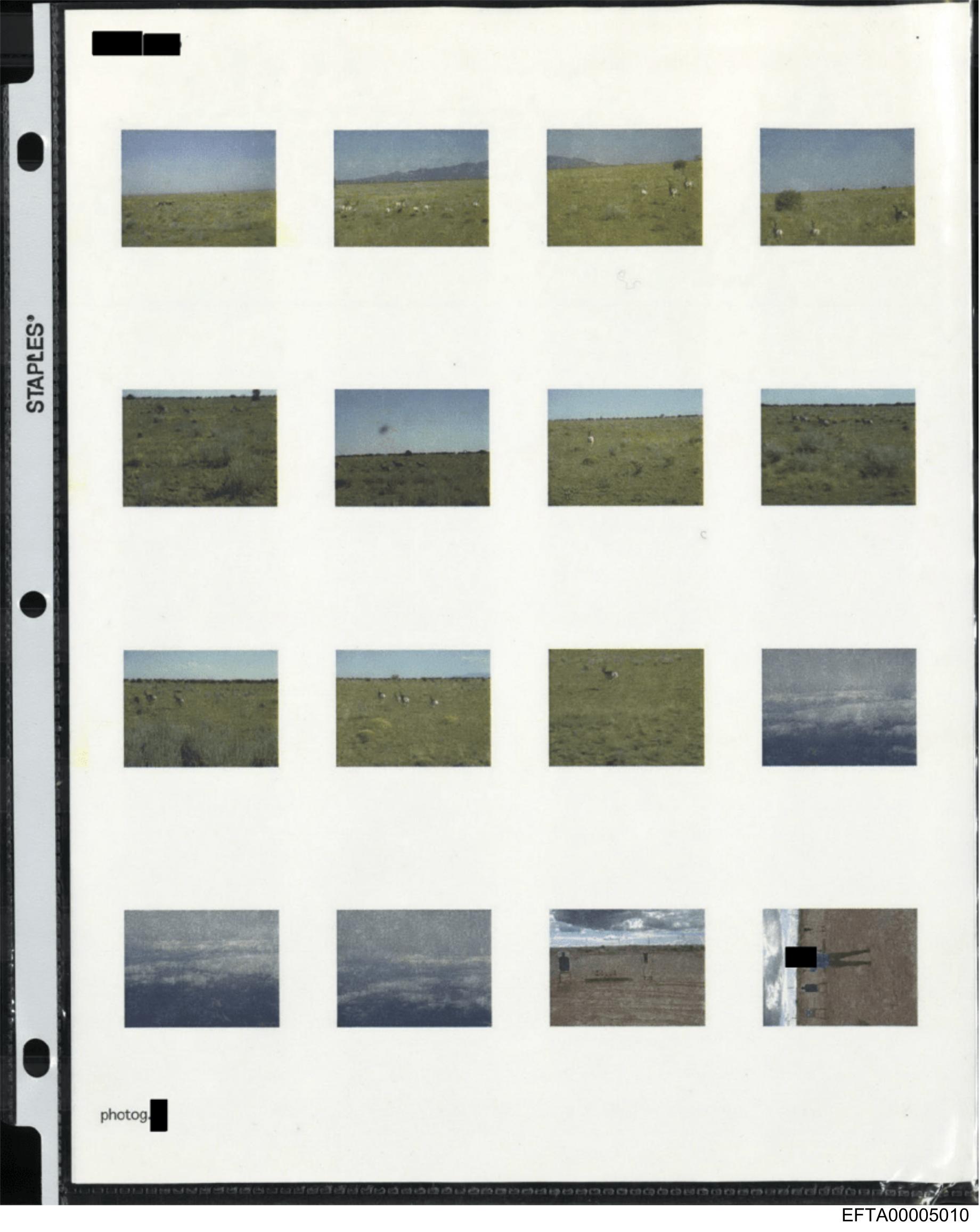 The image shows a collection of nine photographs arranged in a grid pattern, with the top row having three pictures and the bottom row two larger ones flanking a smaller one. The central photograph is slightly askew, making it appear rotated compared to the others. Each photograph depicts different scenes, but they all share a common theme: landscapes featuring grassy areas under varying lighting conditions, suggesting different times of day or weather. There are no visible texts, people, or specific locations that can be discerned from this description. The style of the image suggests it could be part of an album or scrapbook, given its layout and the presence of holes along the top edge for securing pages together.