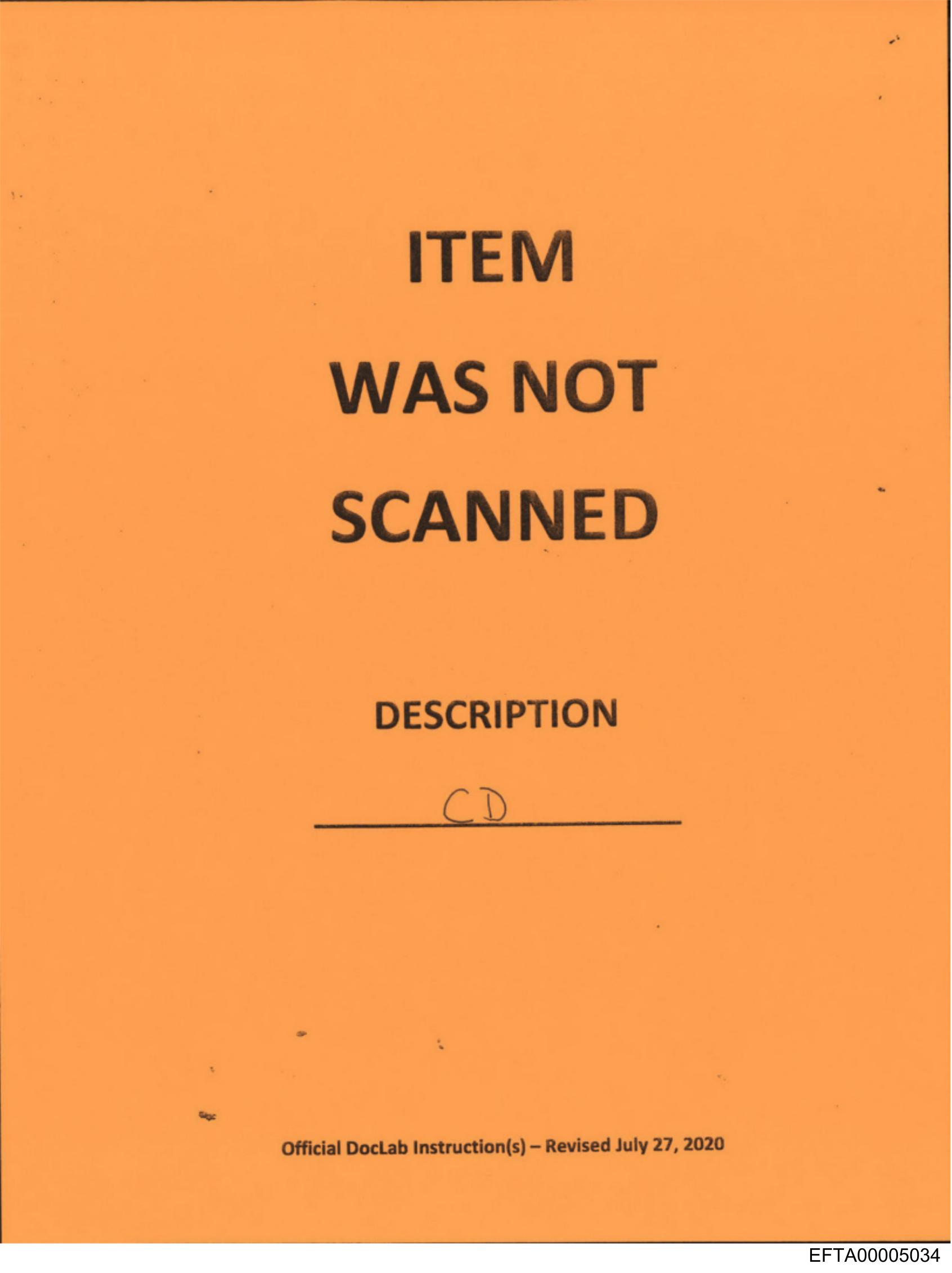 The image shows a yellow paper with black text on it. The paper appears to be some sort of notice or form, possibly related to inventory management or package tracking given the message at the top. It reads "ITEM WAS NOT SCANNED" in bold letters, indicating that there was an attempt to scan something but it was not successful for some reason. Below this text is a line where someone has written "CD" with handwriting, suggesting that the item in question could be a compact disc or perhaps a specific type of CD, though the details are not provided. The paper also includes additional instructions and information at the bottom, but they are too small to read clearly. There are no people, locations, or significant objects other than the yellow paper itself visible in this image.