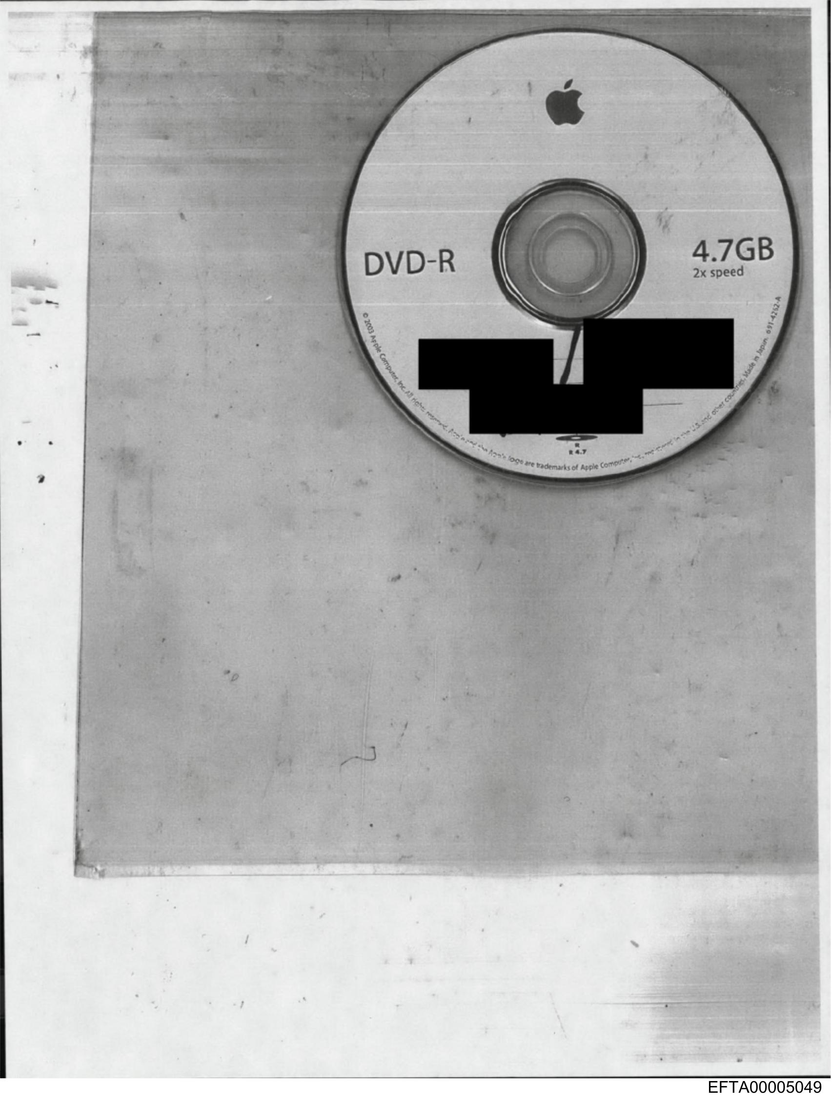 The image is of a disc case for an Apple product labeled "DVD R" with a capacity of "4.7GB." The disc itself appears to be inserted into the case and shows signs of wear, indicating it has been used. A significant portion of the visible text on the disc is obscured by an emoji-like symbol over what could have been a title or other information. The background is nondescript with a faded appearance, suggesting the photo may be old or taken in low light conditions.