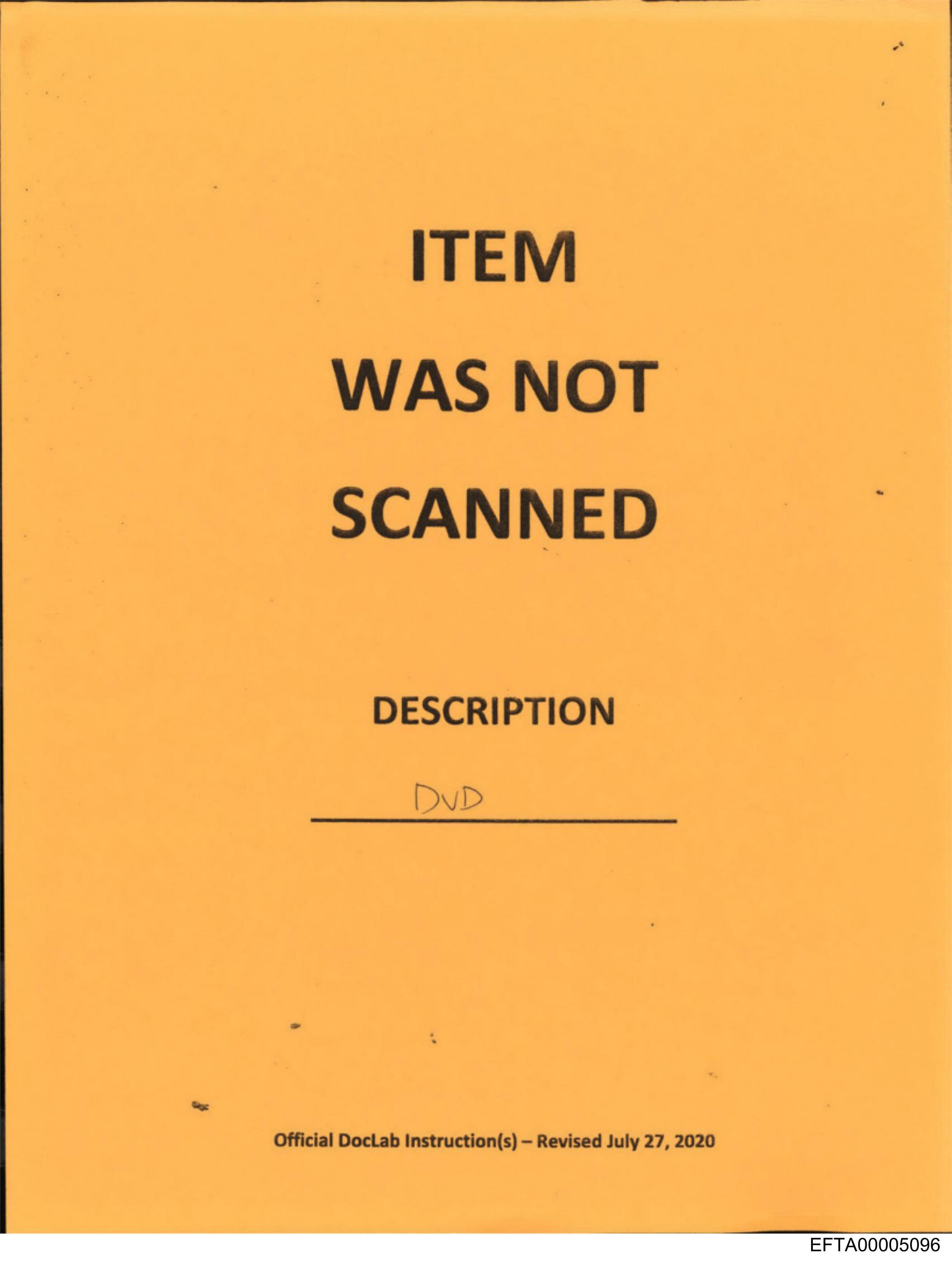 The image displays a yellow sign with printed and handwritten text on it. The central message states "ITEM WAS NOT SCANNED" in bold black letters, indicating that an item has not been properly checked at a certain station or point of service. Below this message, there is a line labeled "Description" followed by handwritten text that appears to be a code or description related to the unscanned item; however, it is not fully legible due to the resolution and angle of the image. At the bottom of the sign, there's additional information which seems to include an official document ID number "06-17" followed by the text "DOCTOR ORIENTATION INSTRUCTIONS" in a smaller font size. Below this title, there is another line with handwritten text that reads "July 26, 2011," suggesting that the instructions were related to an event or process on this specific date. The sign appears to be informational and intended for operational use within an organization, likely in a healthcare setting given the context of "doctor orientation" and references to scanning items which could relate to patient records or medical equipment tracking. The quality of the image is somewhat blurry, making certain details less clear.