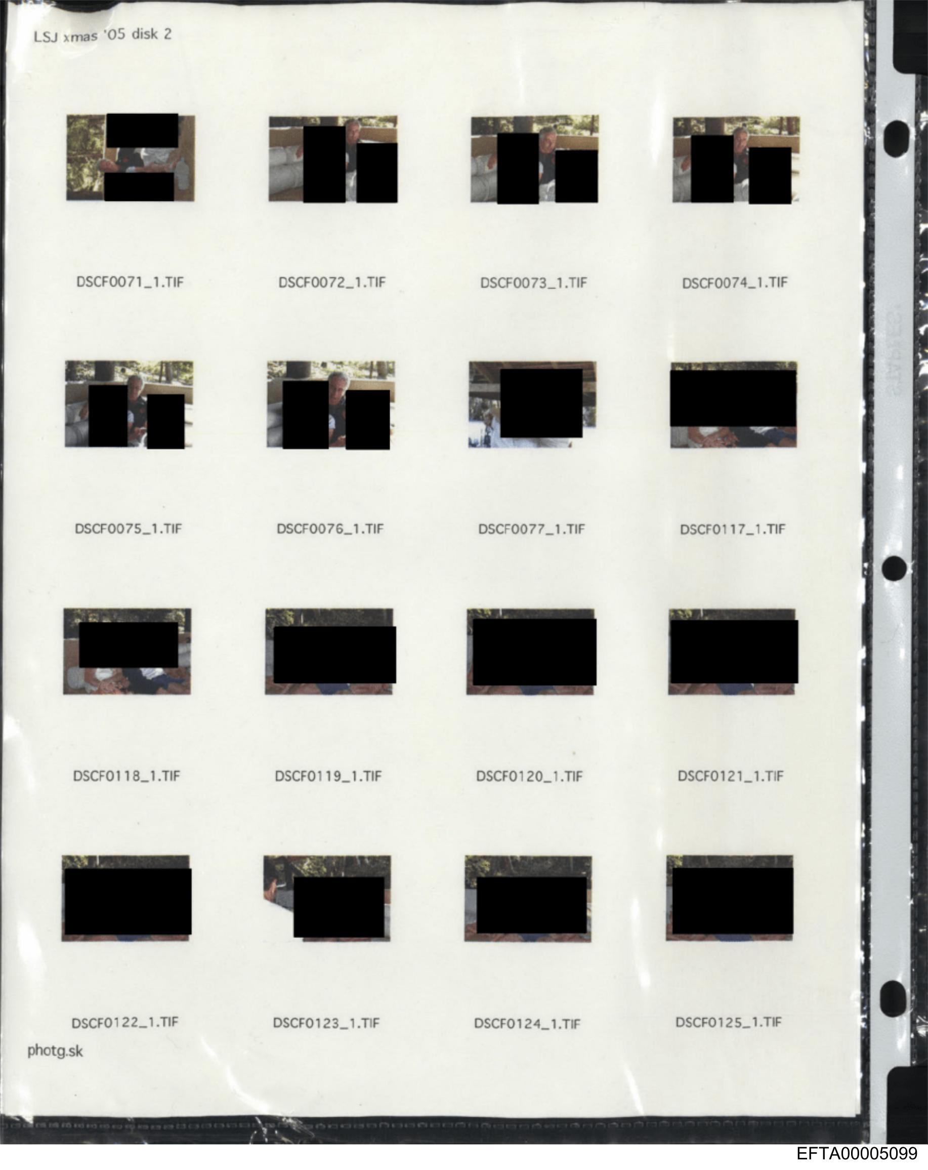 The image displays a Polaroid photo strip with nine individual photographs arranged in three rows and three columns. Each photograph is accompanied by a label at the bottom, which likely contains some information about the picture, possibly including dates, names, or other descriptive details. However, due to the resolution of the image provided, the text on these labels is not legible. The style of the image suggests it may be an older type of instant photography, given the Polaroid format and the visible borders around each photograph. The photographs themselves are blurred, making any discernable content within them difficult to determine.