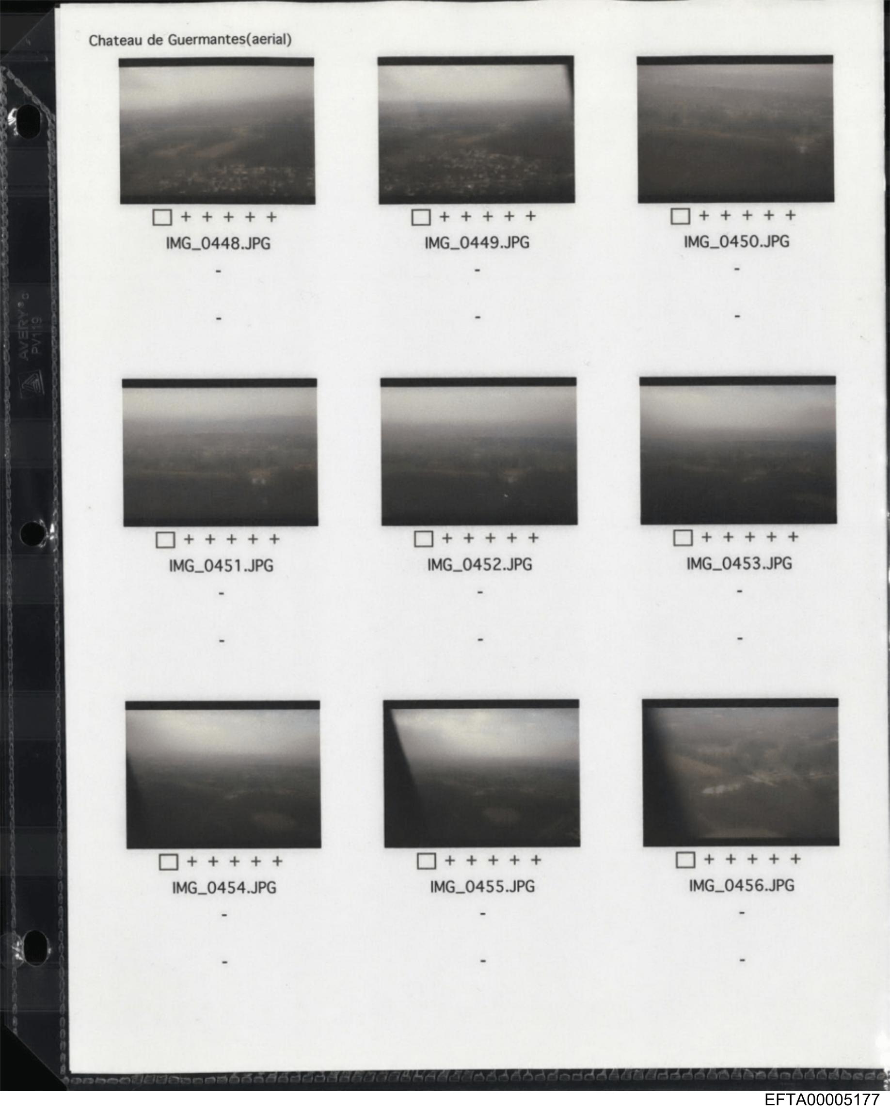 The image shows a collection of six photographs arranged in two columns and three rows on what appears to be an album page or a piece of paper with printed borders. Each photograph captures the same scene at different times of day, as indicated by variations in light and shadows cast. The scenes depicted include various aerial views that suggest they might have been taken from an aircraft window, showing landscapes below. In the upper left corner of each photograph is a watermark or signature that reads "DALROD". Below this text is a series of numbers, which could be serial numbers or identification codes for the images. The overall style of the image is documentary, aiming to show the progression of daylight throughout the day as seen from above.