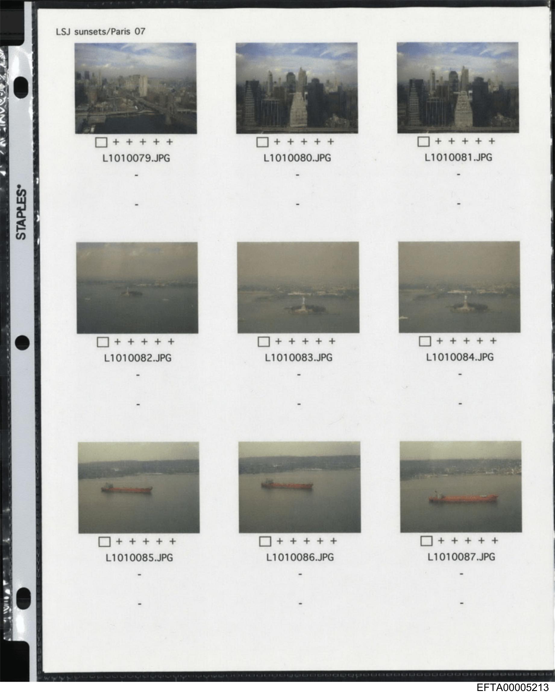 The image appears to be a film strip with several photographs arranged side by side on what looks like a projector frame. Each photograph captures different scenes of a cityscape with skyscrapers and clouds in the sky, suggesting an urban setting. There are no texts visible in the photos themselves, but there is some text at the bottom that seems to be metadata or film information, which includes phrases like "SWOP" and "MICROSOFT POWERPOINT," indicating these may have been digital slides used in a presentation. The overall condition of the image suggests it's old or has been treated roughly, as there are creases and wear visible on the film strip and images.