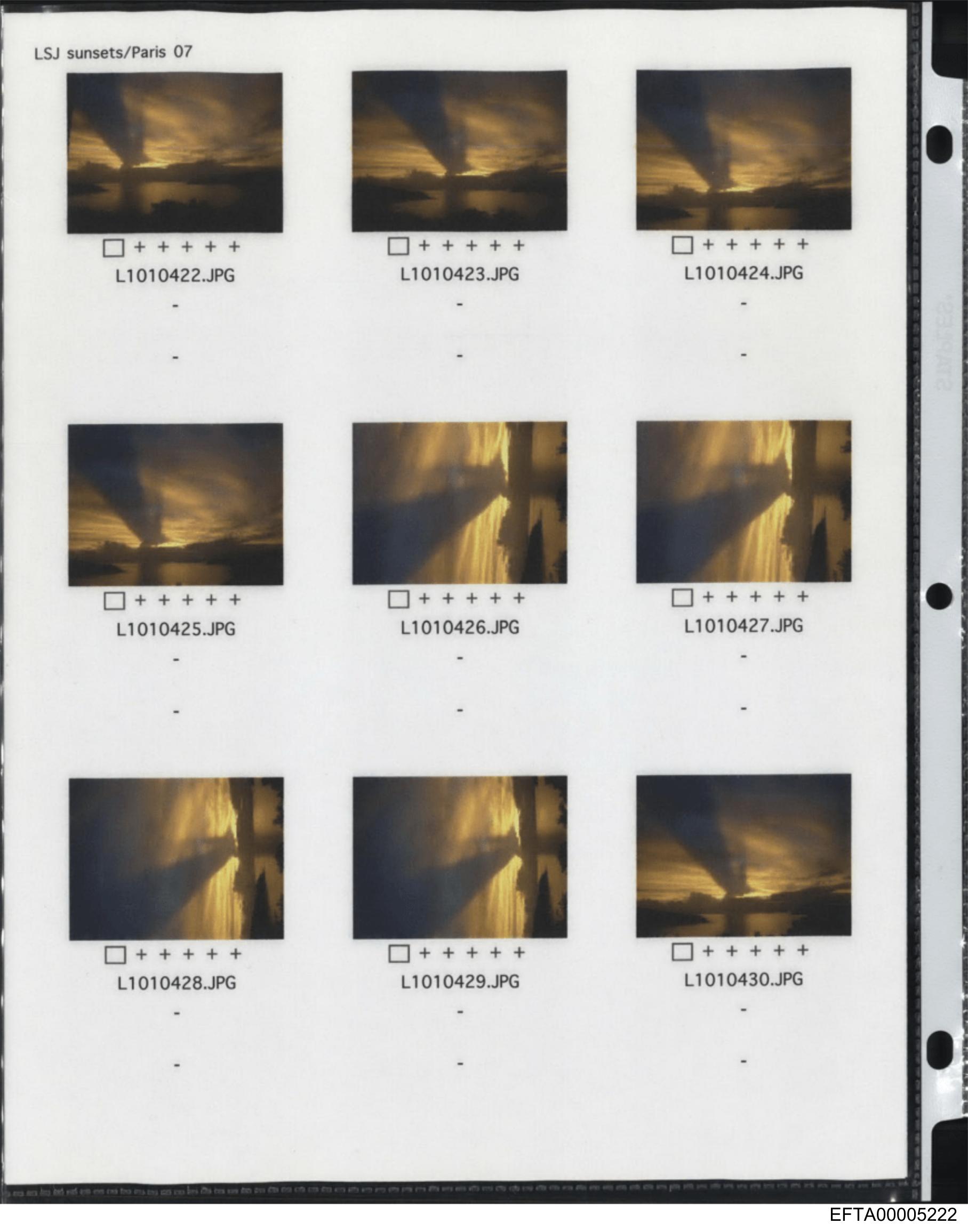 The image shows a set of four photographs arranged side by side on what appears to be a printed page, possibly a report or brochure, with each photo marked as "Page 17" at the top left corner. The first photograph depicts a natural scene with a sunset or sunrise over a body of water, creating a reflection. The second photograph is similar in content but taken from a different angle showing the horizon and the skyline. The third photograph features the same phenomenon but includes more of the sky's color gradient and possibly an object in silhouette near the horizon. The fourth photograph mirrors the first with its composition but seems to capture a slightly later moment in time, as indicated by changes in the colors of the sky. Text is present in all four images, likely indicating metadata such as file names or descriptions (e.g., "Page 17"), but it's too small to read clearly. There are no visible people, specific locations, or significant objects that can be discerned with certainty due to the resolution and angle of the photo.
