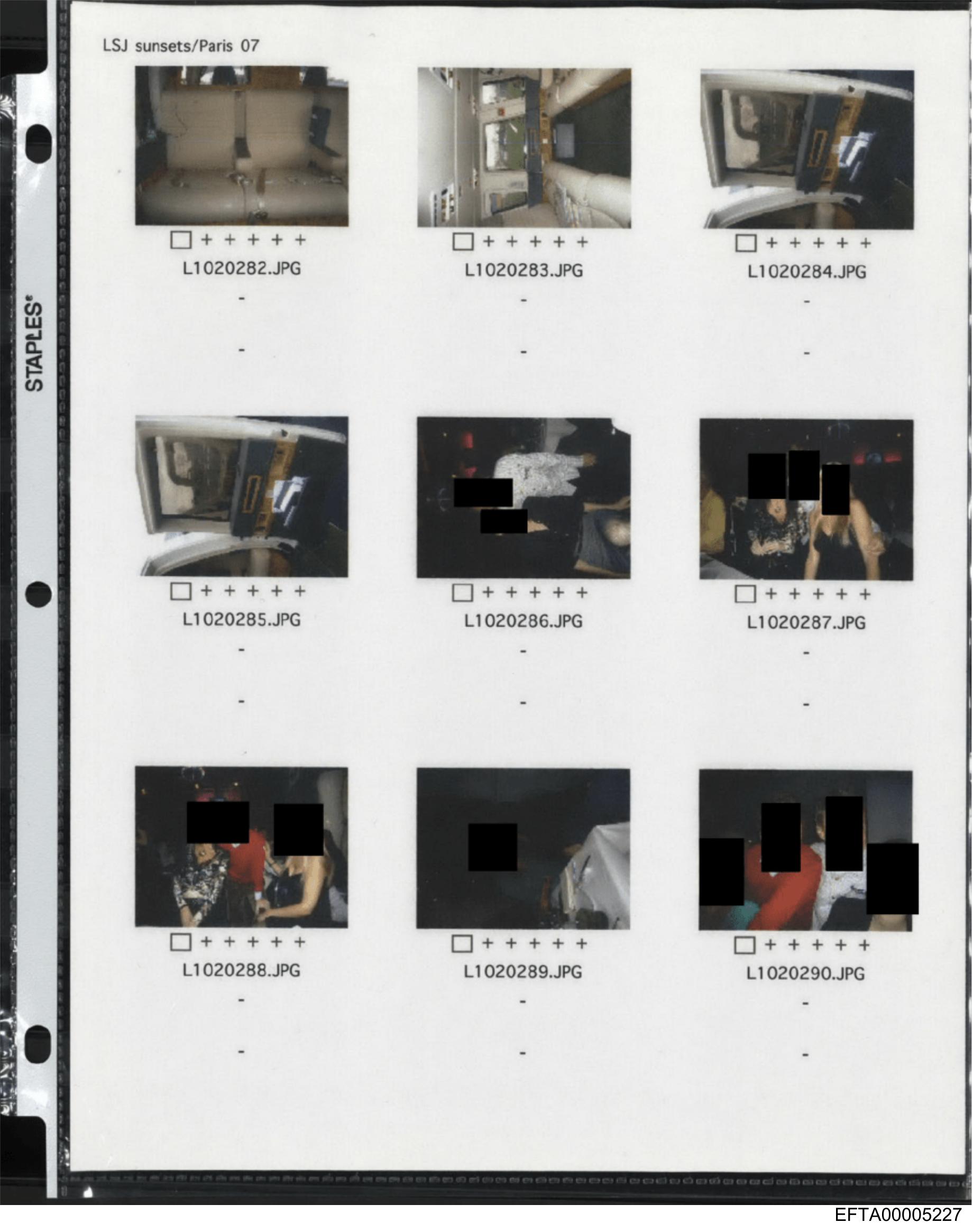 The image displays a collection of six photographs arranged vertically on what appears to be a paper medium, possibly an album page or a printout. Each photograph is bordered by white space and contains different scenes that are partially obscured with red and black X's, suggesting the images have been censored for privacy or security reasons. The quality of the photos varies, ranging from clear daytime settings to darker indoor environments. The text visible in the image includes numbers "123456" at the bottom left corner of the first photo, which might indicate a sorting order or page numbering within a larger collection. There are also file names like "1.jpg" and "2.jpg" at the top right corners of the respective photos, indicating they may have been named in sequence when saved. The images depict various individuals and environments, but due to the censorship, specific details such as identities or locations remain obscured.