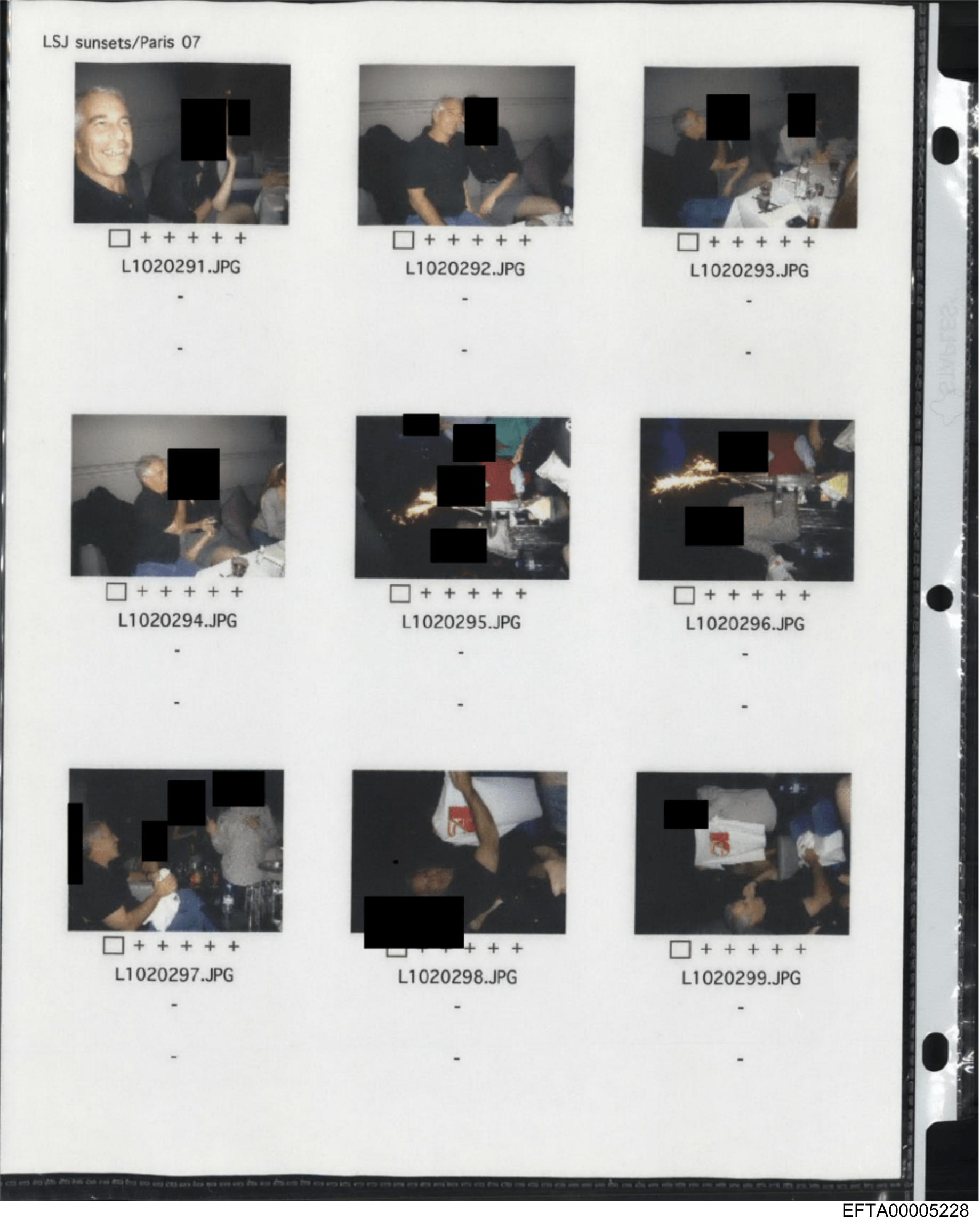 The image appears to be a collage of three smaller photographs placed together on a white surface. The top photo shows two individuals sitting closely, with one person facing the camera and the other turned away. The middle photograph features a group of people at what seems to be a social gathering or event, with some individuals posing for the picture. In the bottom image, there is another group scene where people are standing and interacting; this photo captures a dynamic moment that includes laughter and animated conversation. Each photograph has been digitally altered with a red "X" placed over them, likely to obscure or indicate that certain elements within the pictures should not be identified or discussed. The text visible in the image is too small to read clearly.