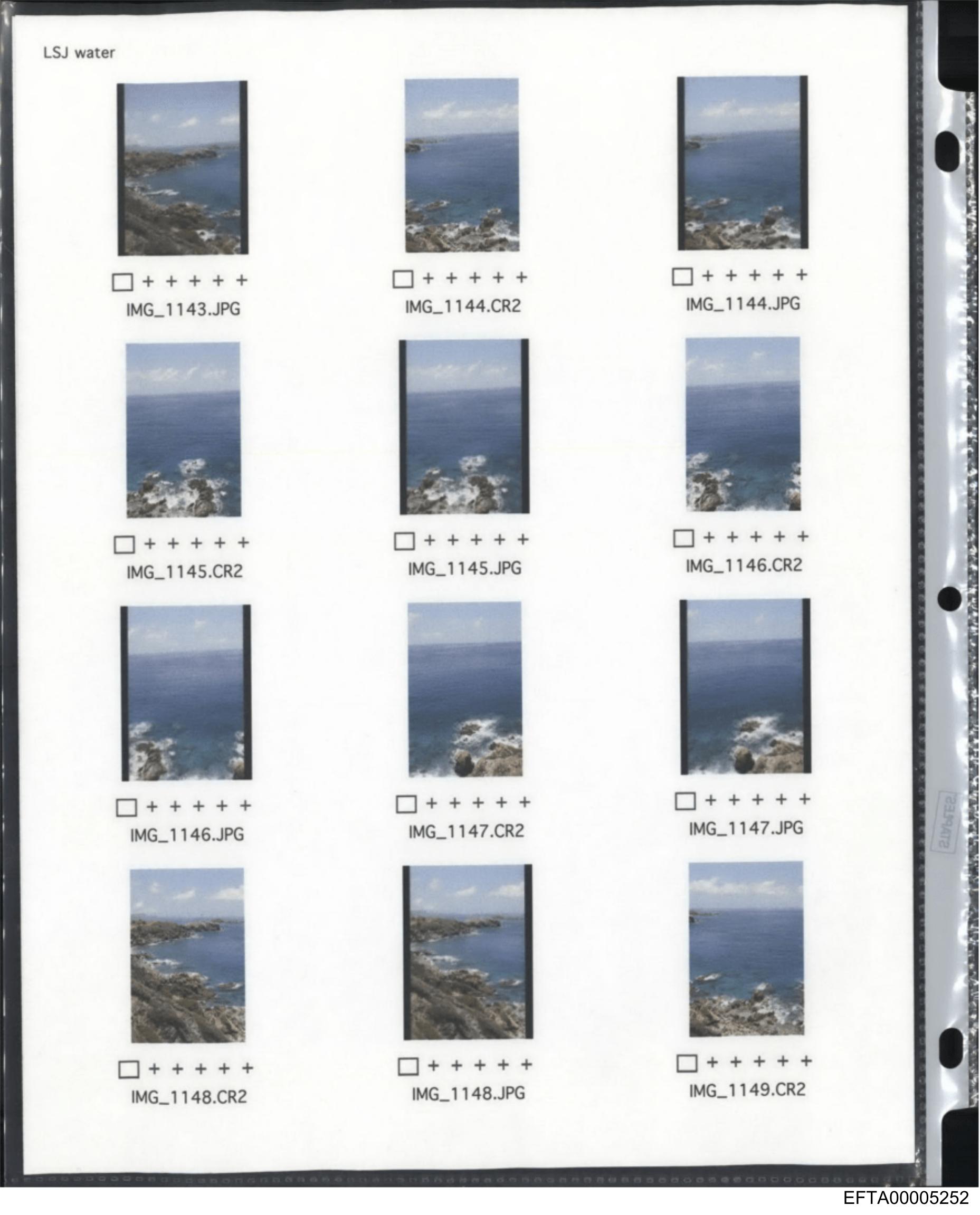 The image appears to be a digital representation of multiple photographs printed onto an adhesive surface, possibly for use as stickers. Each photograph depicts the same scene: a serene landscape with blue water and rocky coastlines, suggesting it might be a collection from a single photographer or location. The watermark text on each image reads "101" followed by what seems to be a file name or reference number. There is no visible human presence in the photographs themselves, which focus solely on the natural scenery.