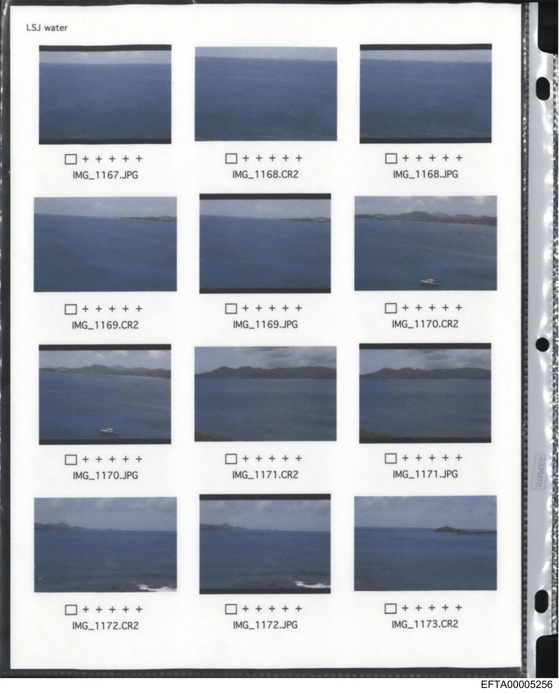 The image shows a collection of small photographs pasted onto what appears to be a card or scrapbook page. Each photograph captures a different scene with varying degrees of detail and lighting conditions. The images are closely packed together, suggesting they might depict a series of moments, possibly taken during travel or exploration. There is no visible text on the photos themselves that provides context or information about their contents. The style of the photographs suggests a mix of snapshots and potentially artistic compositions.