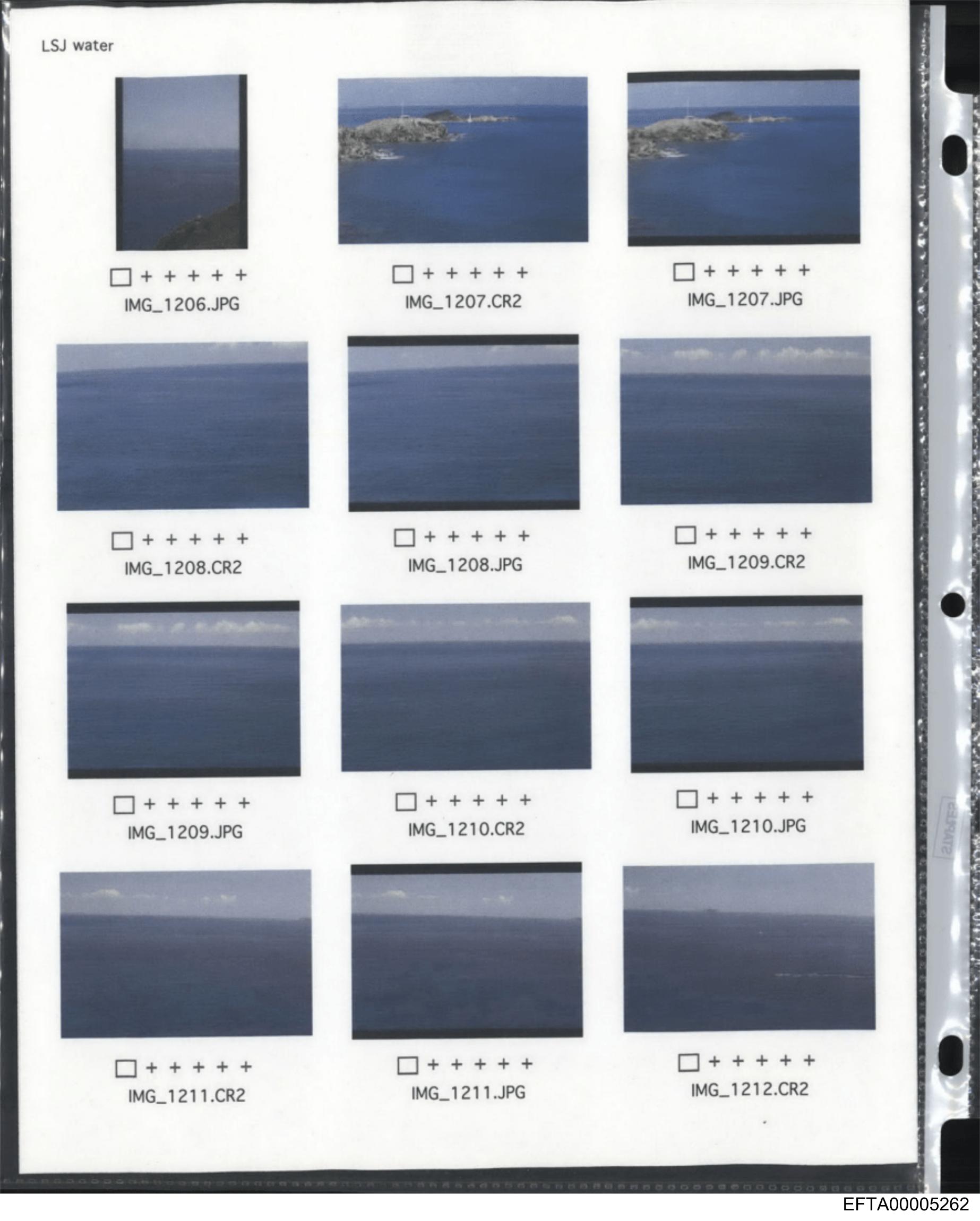 This is an aerial photograph of a large body of water that appears to be an ocean or sea, with several smaller bodies of water scattered across it.