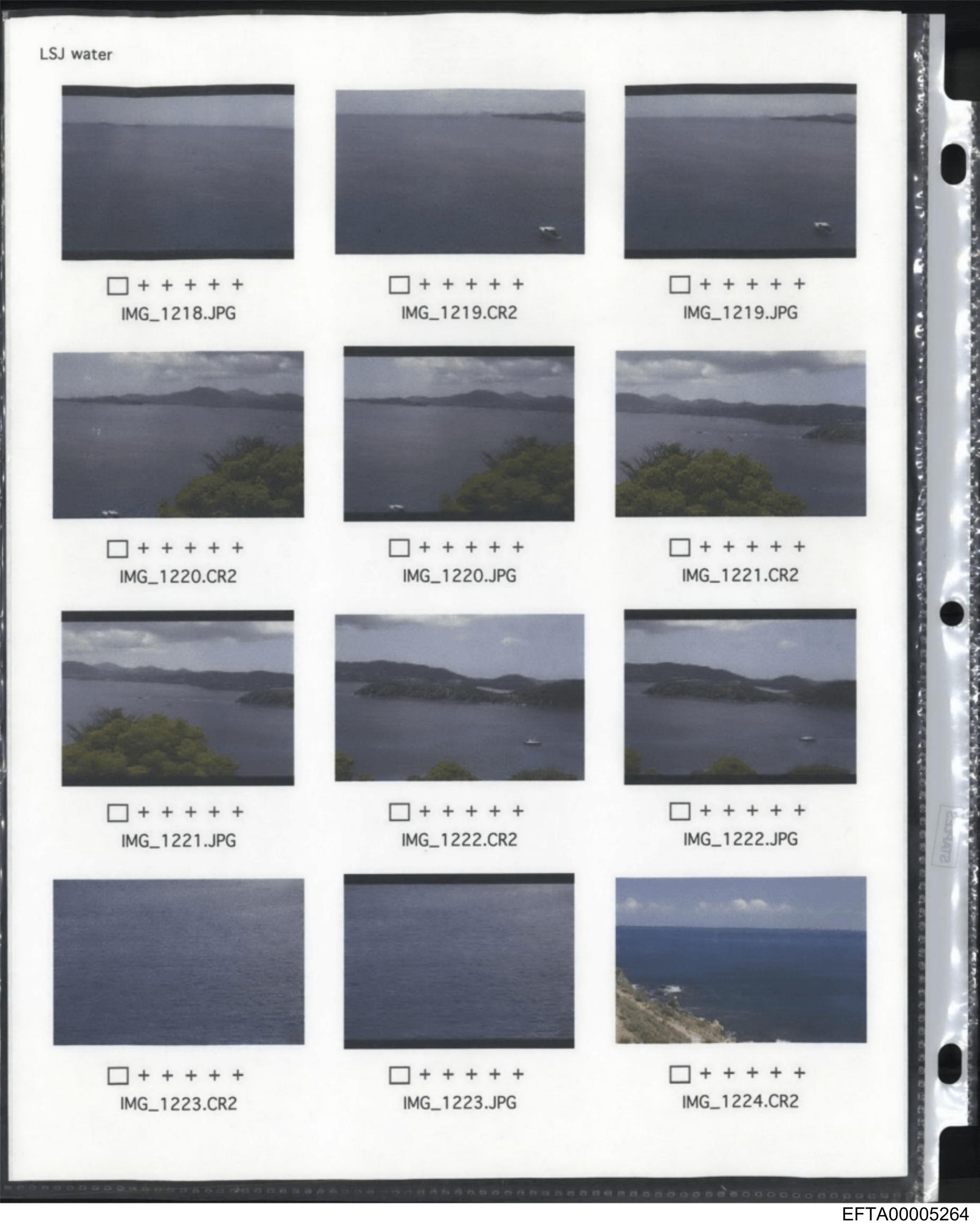 The image you've shared appears to be a collection of smaller images placed together on a larger sheet, similar to an album or contact sheet one might find at a photography studio or in photo editing software. These miniatures represent various scenes from different angles and distances. The central theme seems to be landscapes with bodies of water, possibly lakes, given their calm and reflective surfaces. There are no texts visible in the image that provide additional context. The style of this arrangement is common for organizing and reviewing photographs before selecting which images to develop or print further.