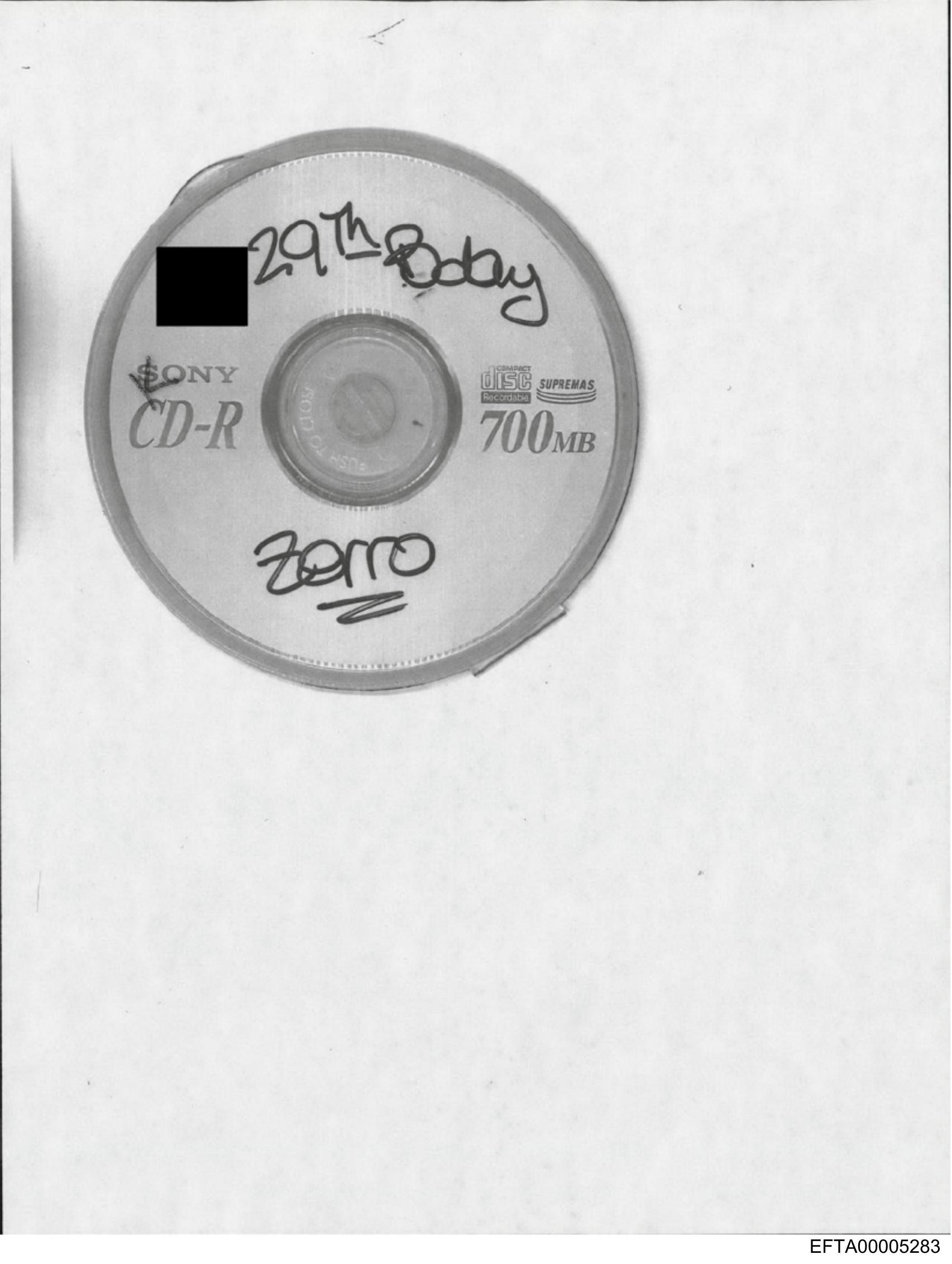 The image shows a compact disc (CD) with a label on the top center.