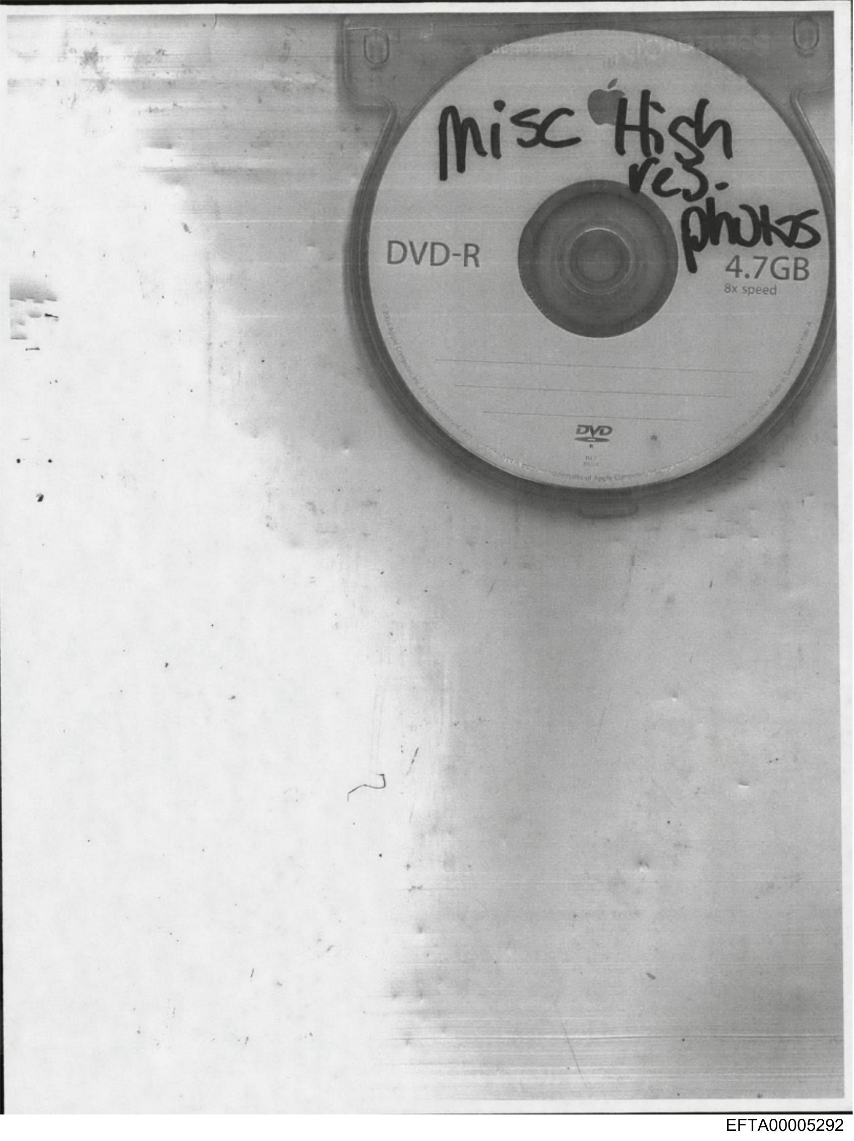 The image shows a close-up of what appears to be a scratched CD with the label "MISC PHOTOS" written on it in black marker.