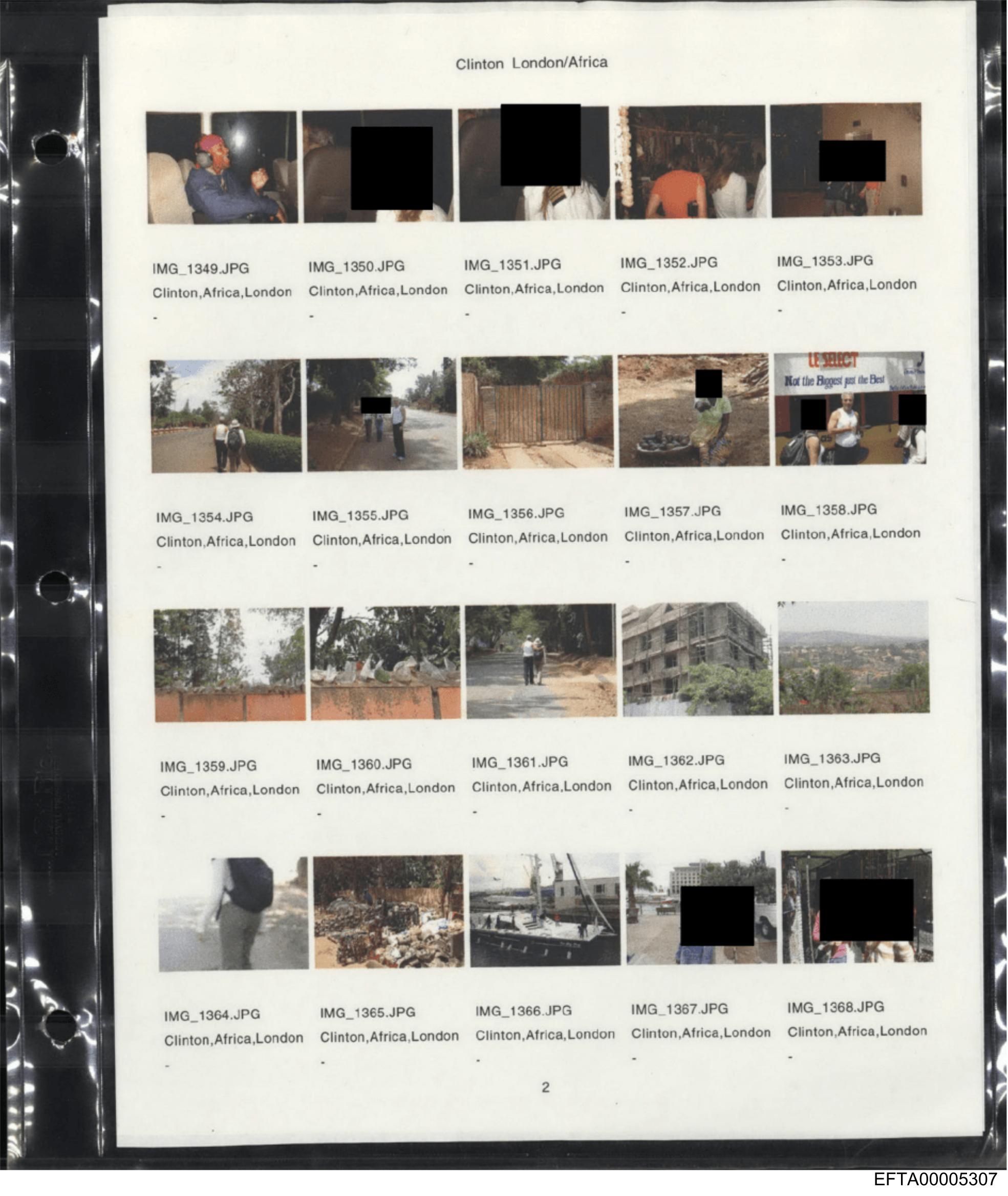 The image displays a page of photographs and captions related to London. The photos are arranged in a grid pattern with black borders, and each photo is accompanied by a title in white text at the bottom. The subjects of the photographs include various street scenes, buildings, and what appears to be an individual in one of the images. The texts are partially obscured or cut off due to the angle and focus on the page's layout rather than the specific content. There is no visible location in terms of geographical context, as all references pertain to London-related imagery.