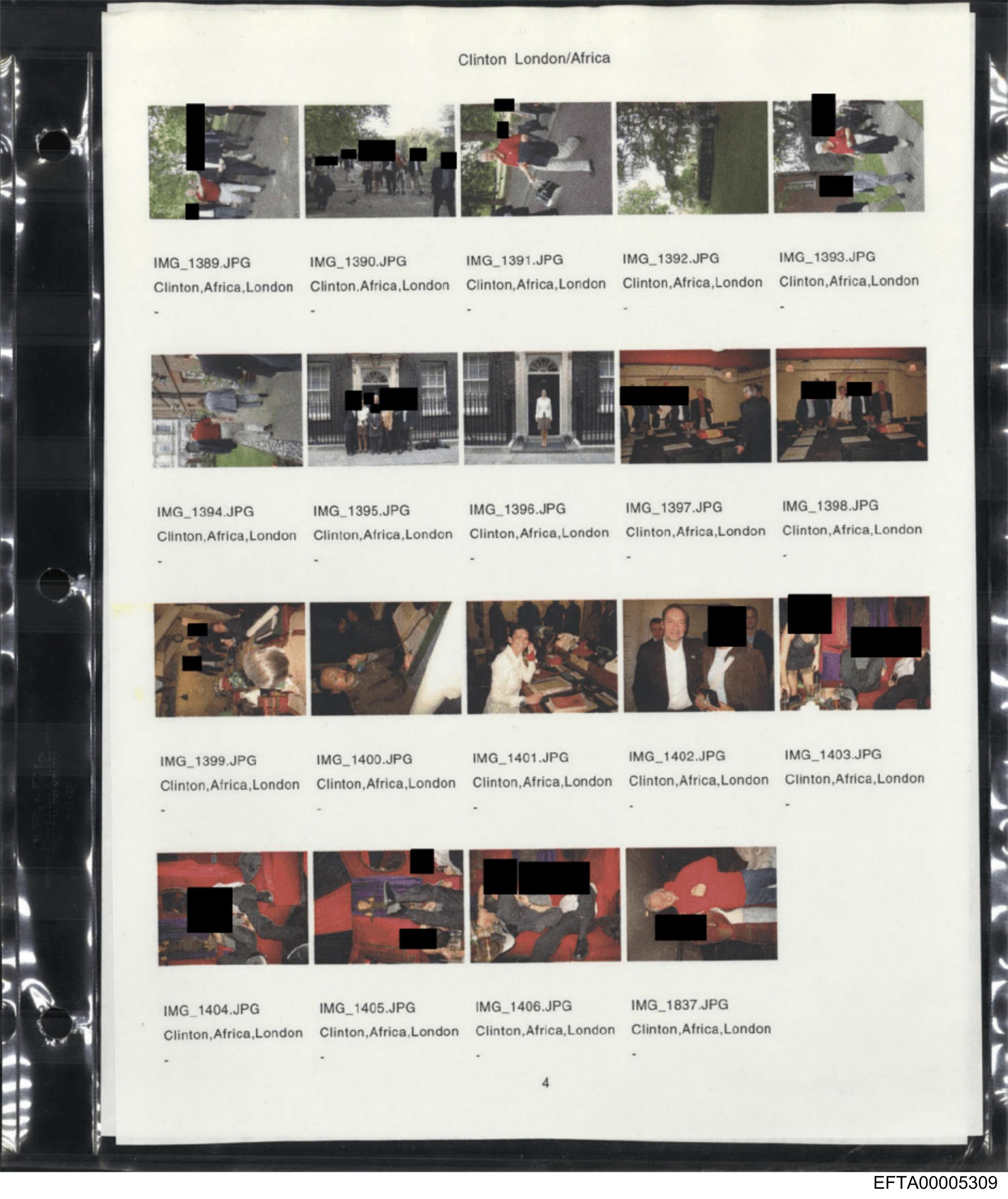 The image is a printed sheet of photographs with accompanying descriptions. It appears to be a page from an album or a catalog of images related to the city of London. There are several black and white photos showcasing various landmarks, including what looks like Buckingham Palace in the background. The text visible includes place names and dates, suggesting these photos were taken during a visit to London, likely by someone named "David" as indicated on one of the descriptions. The paper is slightly crumpled and has some handwritten marks, possibly highlighting or drawing attention to specific images or notes.