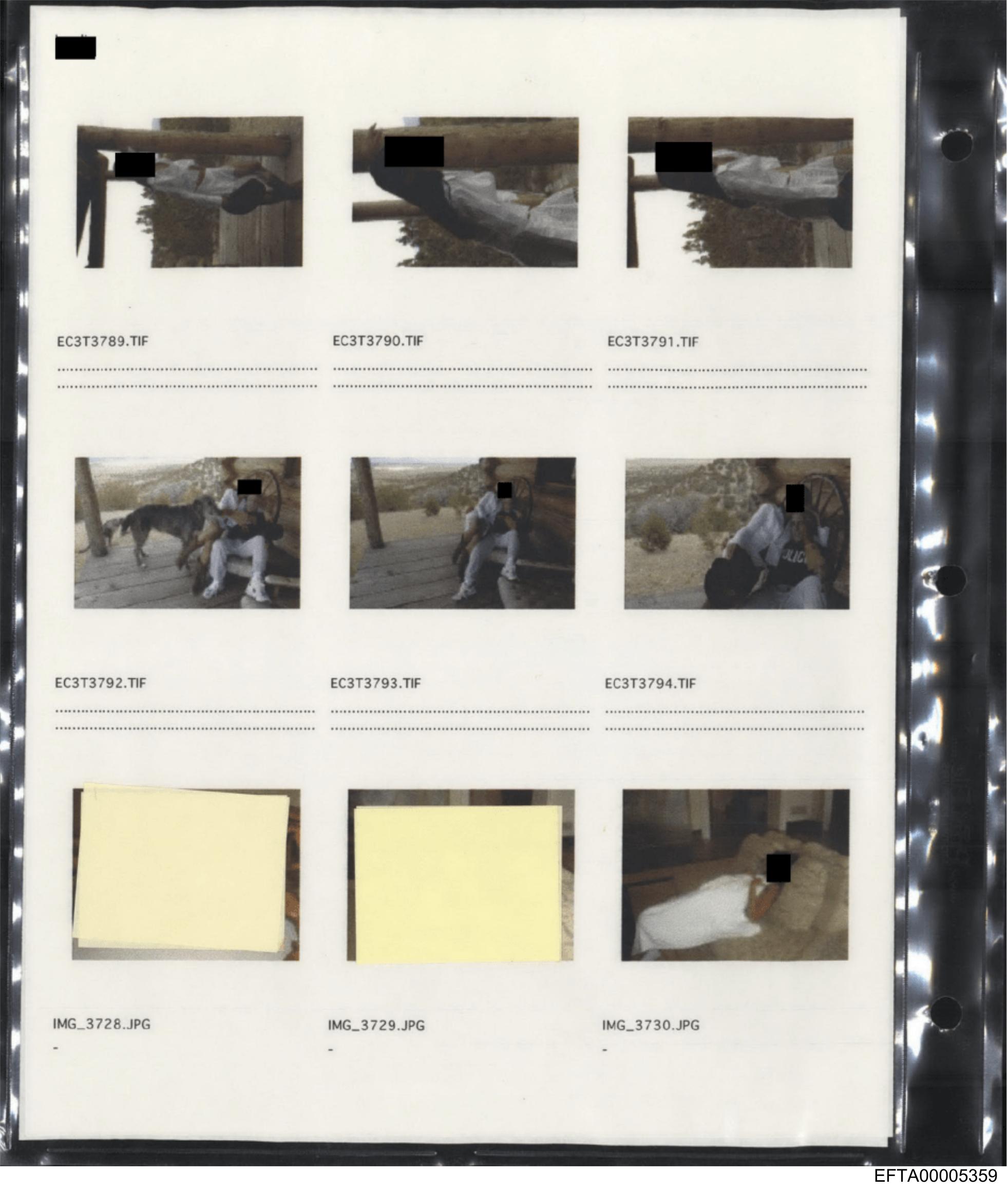 The image you've shared appears to be a collage of photographs with some elements obscured by redacted marks, typically represented as black lines or boxes. The photos seem to depict various subjects and scenes, possibly related to an investigation or case study due to the context provided in the visible text. However, without more specific details about the content within each photo, I can only describe the overall composition of the image.