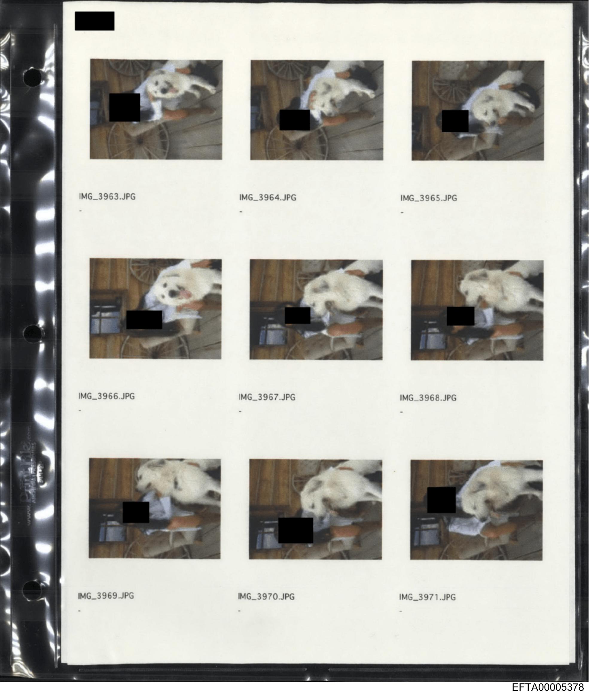 The image displays a strip of six photographs featuring a single cat captured in various poses and settings. The top left photograph shows the cat from above with its head tilted downwards. Moving rightward, subsequent photos depict the cat in profile views, looking left or right, and occasionally interacting with objects such as a small bowl or a piece of paper. The photographs are oriented vertically and horizontally across the strip, which is encased within a plastic covering typically used for presentation or protection of photographic prints. The images have not been altered; they are straightforward depictions without any apparent artistic manipulation. There is no visible text on the image that provides additional context or information about the cat or the photographer.