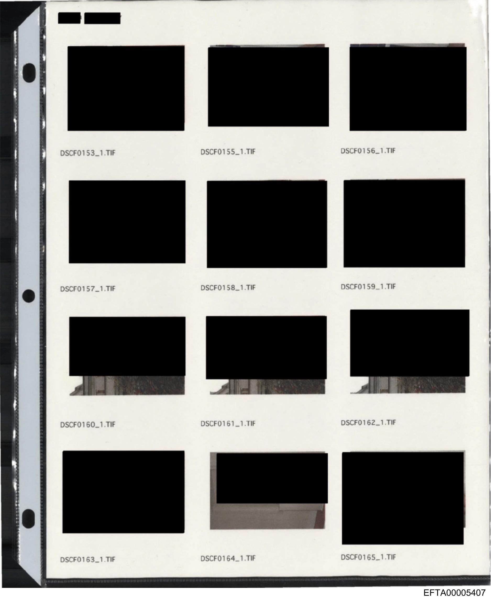 The image depicts a series of film negatives attached to a paper strip, which is commonly used for photographic prints and negatives. The frames are uniformly arranged along the length of the paper, each with an accompanying serial number at the top left corner. However, the actual content of the photographs within these frames is obscured by black marks, likely for privacy or security reasons. These marks completely cover any visible imagery within the frames, making it impossible to discern their contents.
